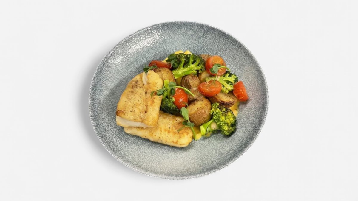 Maiga mencas fileja Holandes mērcē ar jaunajiem kartupeļiem un brokoļiem