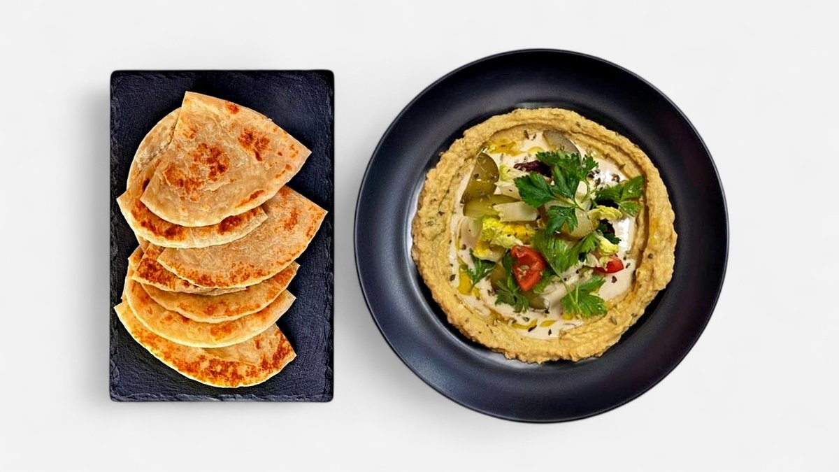UZKODA HUMUS AR TAHINI UN SĀLĪJUMIEM AR MAIZI