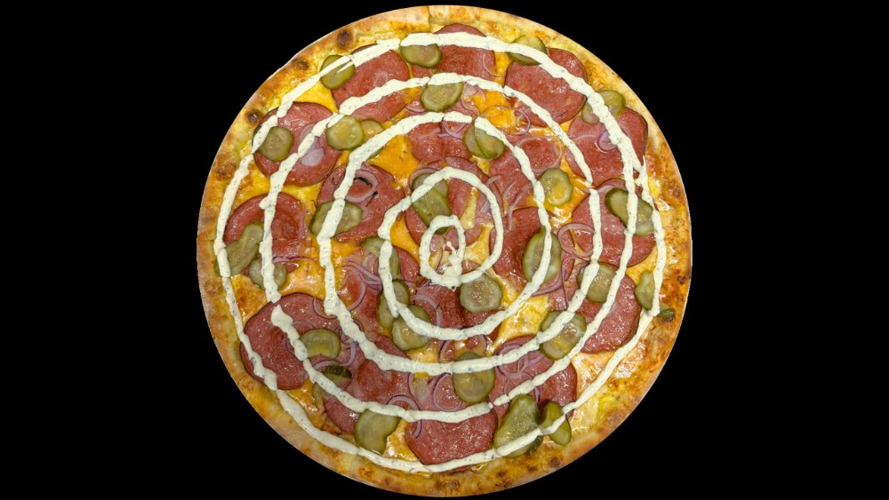 Picu mērce, siers, bekons, sīpoli, marinēti gurķi