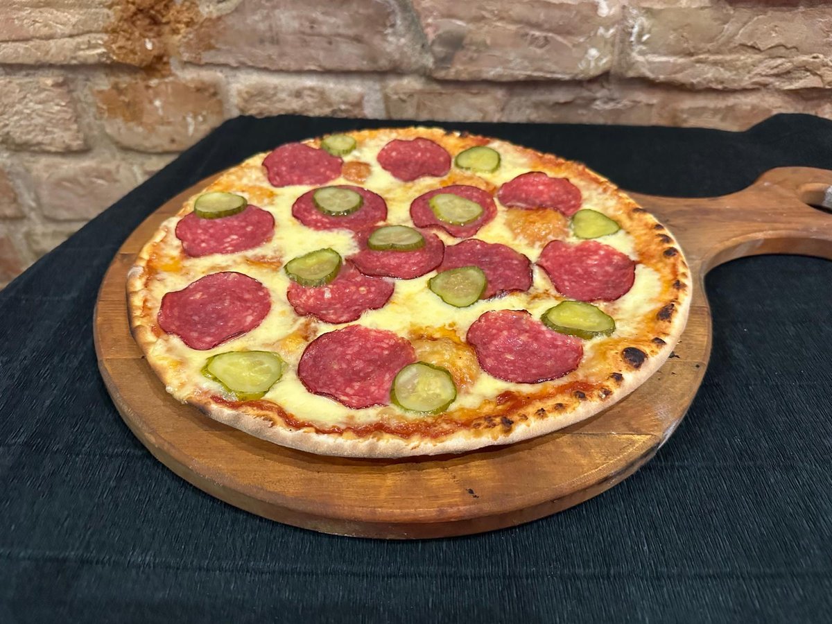 Picas mērce, siers, salami desa, marinēti gurķīši