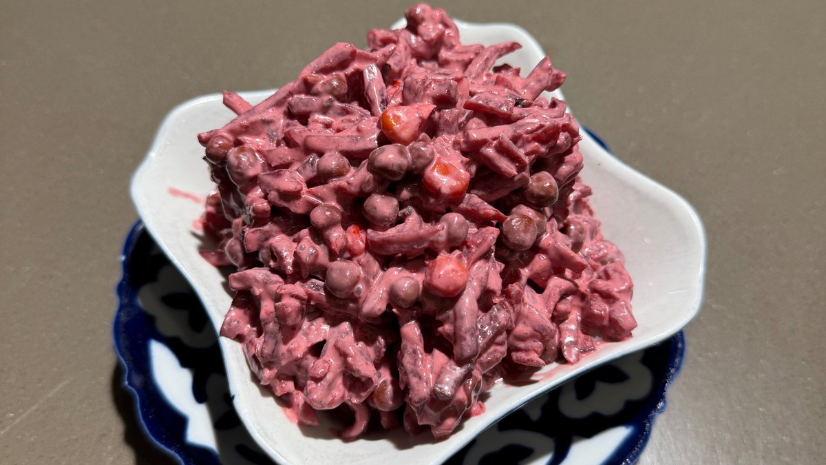 Bietes, zaļie zirnīši, majonēze