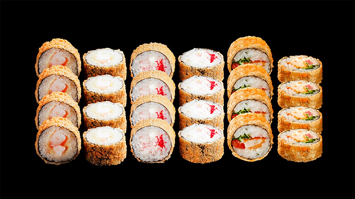 Tempura ar kraukšķīgu vistu, Tempura ar karaliskām garnelēm, Tempura ar lasi, Aļaska, Filadelfija Premium, Ninja, Yoshi Rakoshi, Maruyaki, Etna