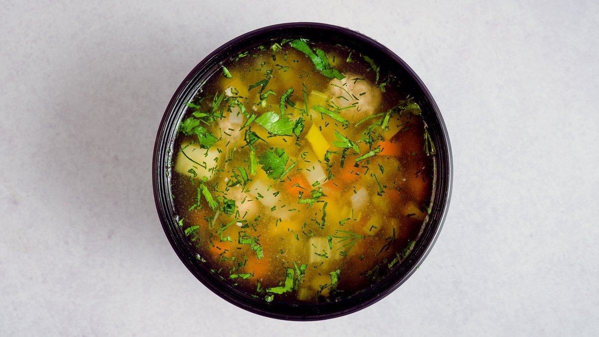 Cūkgaļas frikadeļu zupa ar dārzeņiem