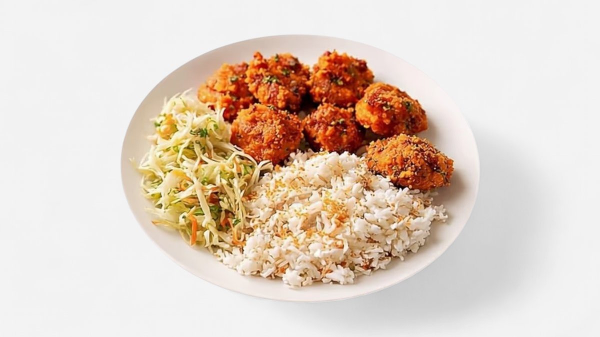Ceptas garneles panējumā ar rīsiem un Sweet chili mērci