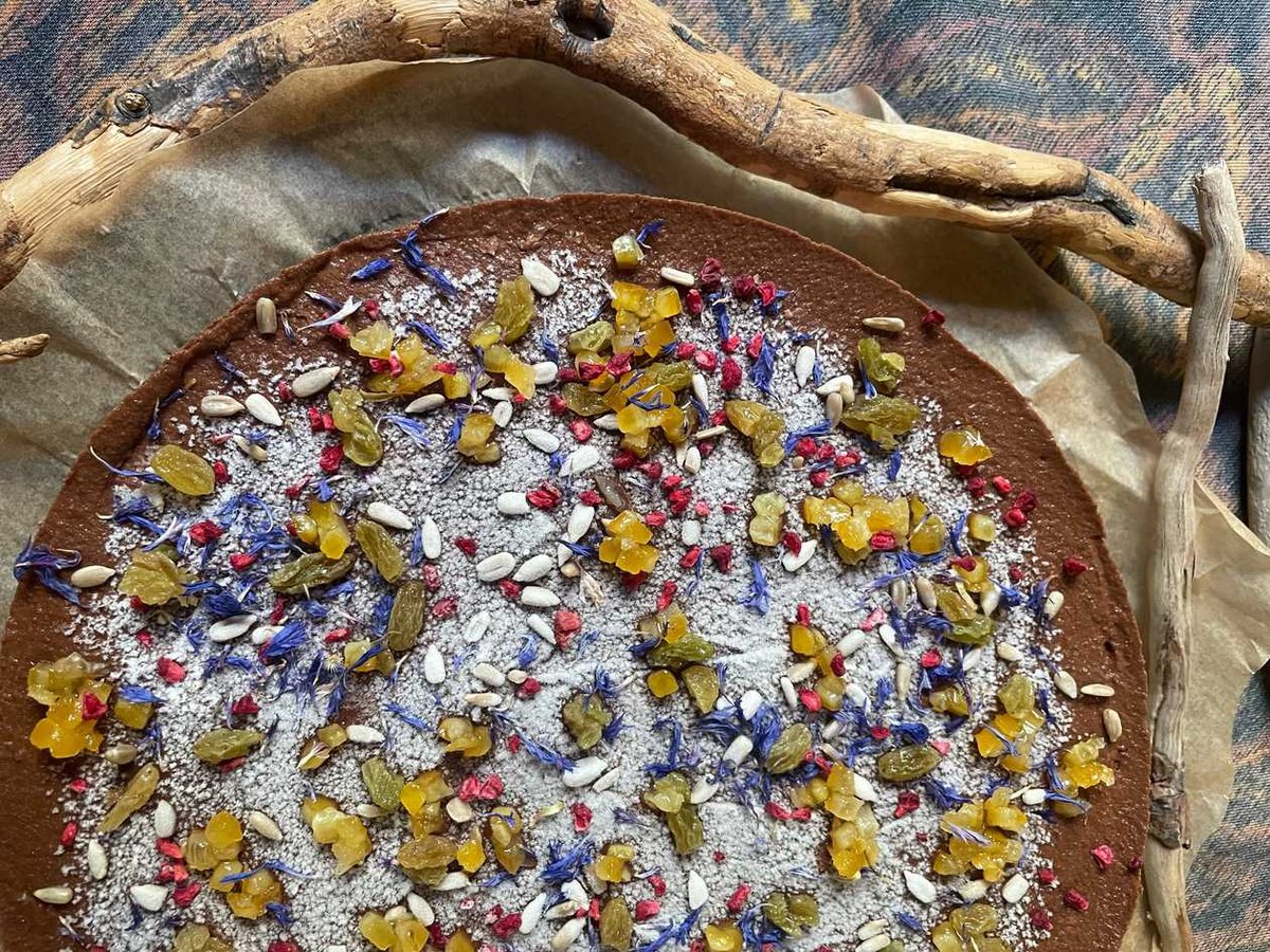 Super gardā raw kūka ir gatavota no 100% raw sastāvdaļām- ogām, augļiem, datelēm, sēkliņām, bez pievienota cukura un bez glutēna. :)