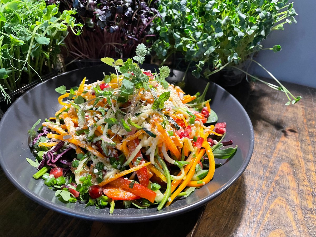 Zaļo BIO griķu pankūka ar krāsnī ceptu batāšu pildījumu, pasniegta ar bazilika pesto, veganēzi, tomātiņiem, gurķīšiem, zaļumiem, sēkliņām un BIO dīgstiem. Svaigi un garšīgi. 🌿💛 Foto- ilustratīvs. :) Atgādinām, ka Nirvana Raw maina ēdienkarti katru dienu, līdz ar to ne vienmēr pilnīgi visi attēli ir no šodienas piedāvājuma.