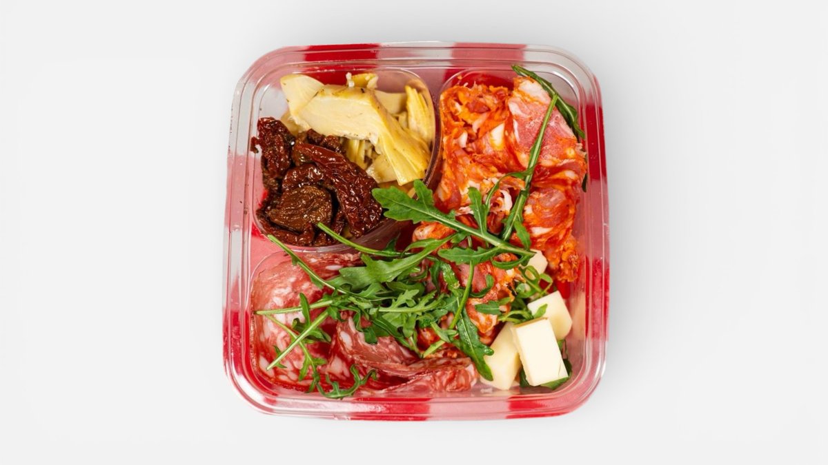 Salami Napoli, salami pikantā Ventricina, artišoki, siers Provolone Piccante, rukola