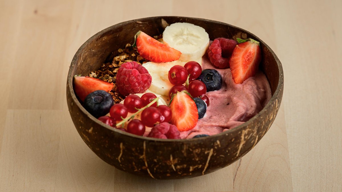 Banāns, ogu mix, avakado, bez laktozes grieķu jogurts, proteīns, čia sēklas, linsēklas, granola, ogas