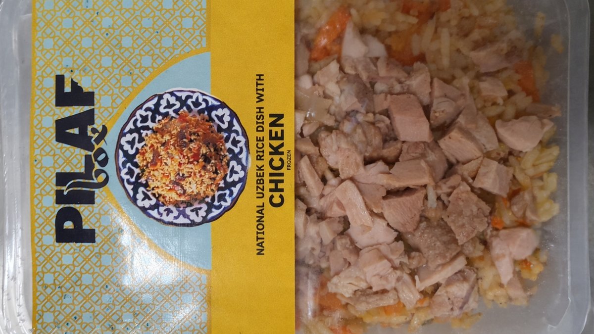 Sastāvdaļas: liellopa gaļa, rīsi, burkāni, sīpoli, rozīnes, zirņi nut, augu eļļa, sāls, melni malti pipari, zira.