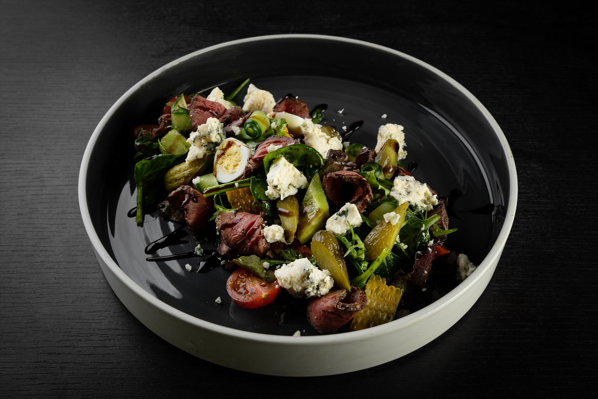 Beef fillet, Salad mix, Dor blue, Cornichons, Cherry tomatoes , cucumber, pesto, Worchester, Cream cheese, Dijon mustard .