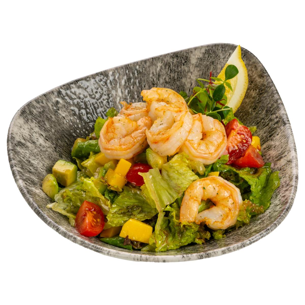 Salāti ar tīģergarnelēm, mango, avokado un šefpavāra mērci