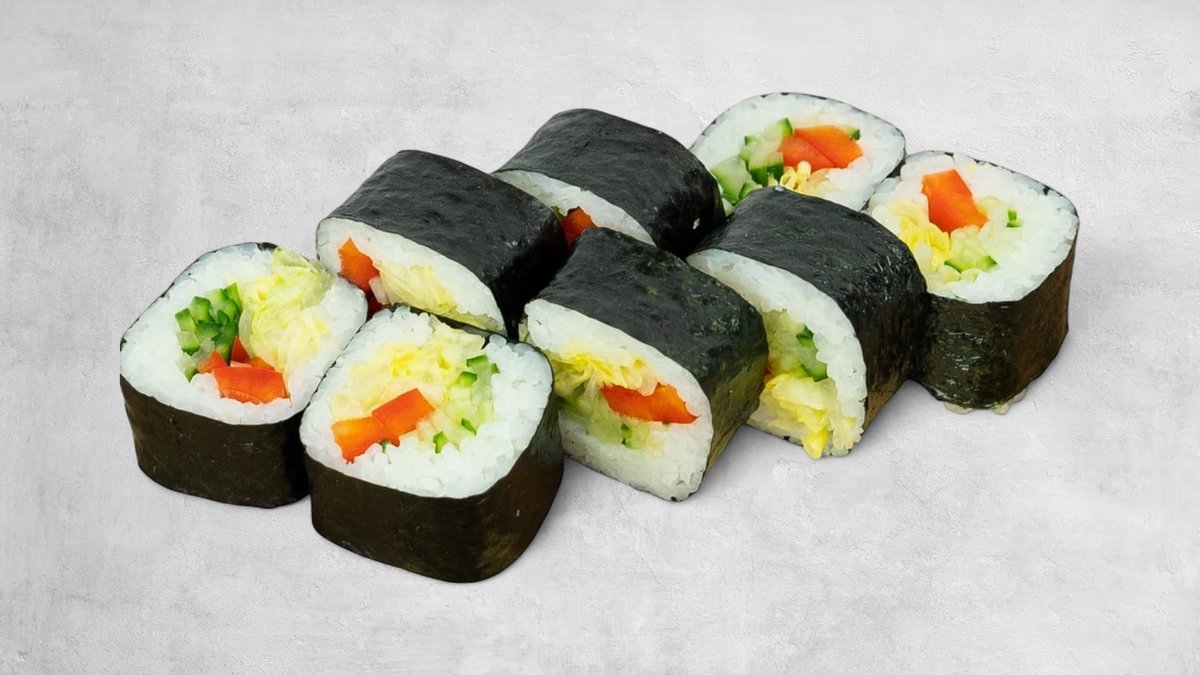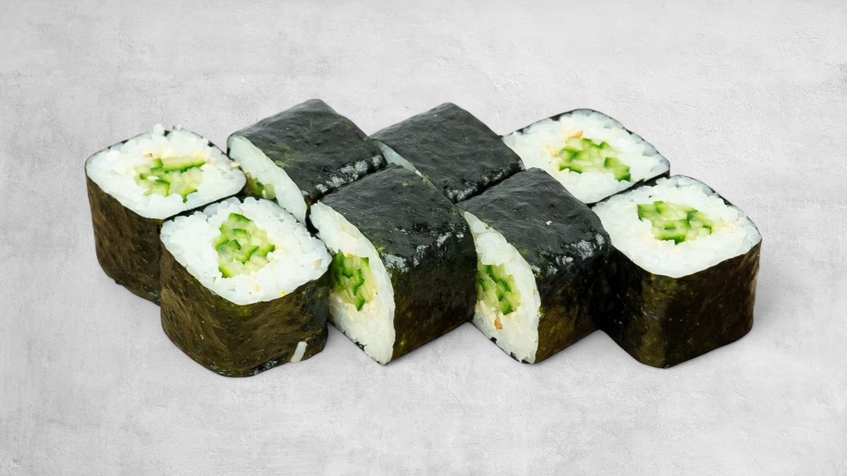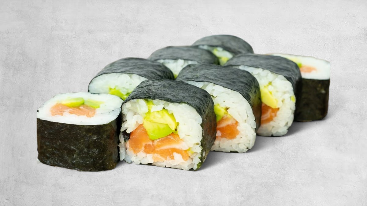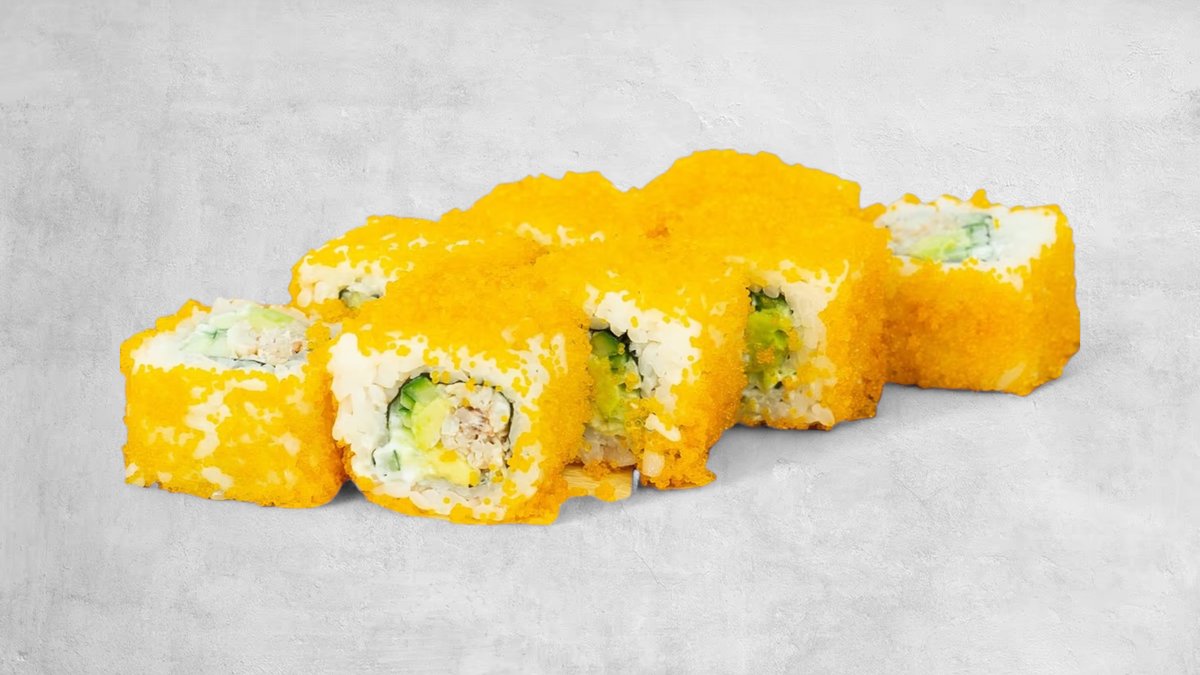Surimi, gurķis, avokado, majoneze, masago ikri