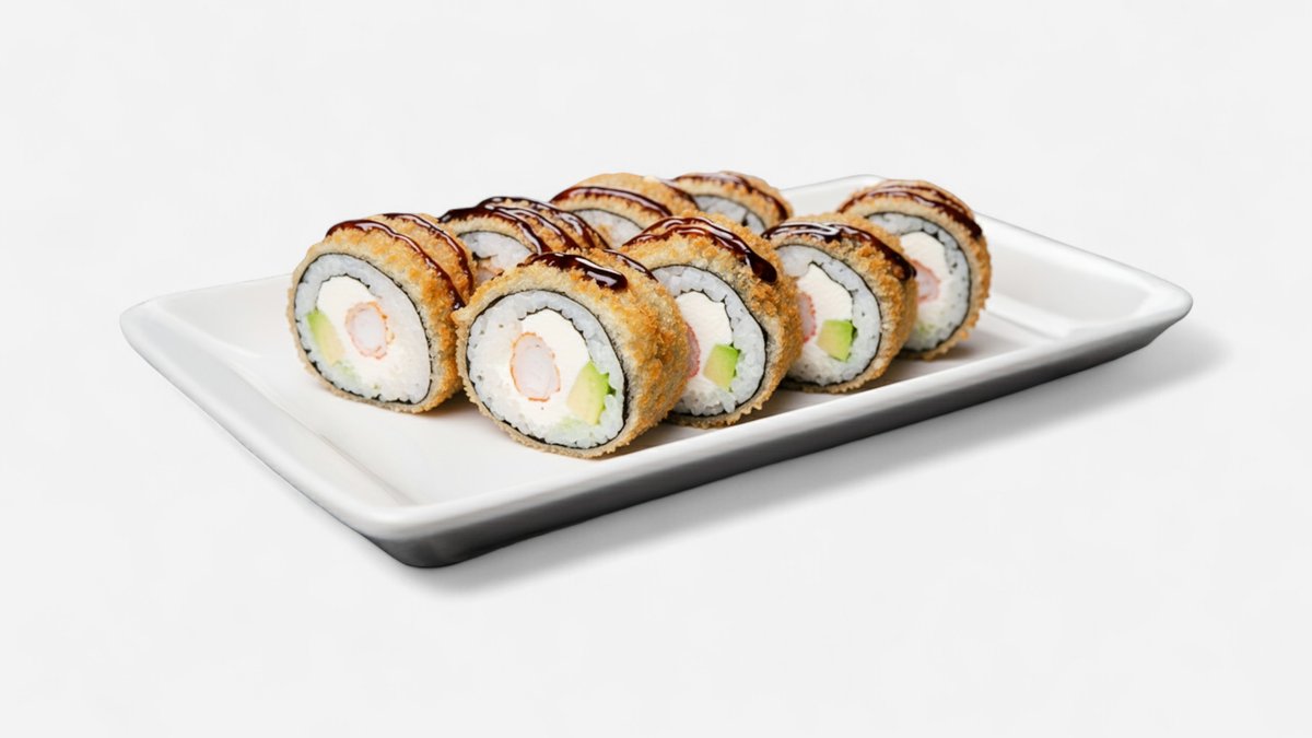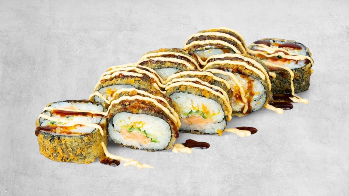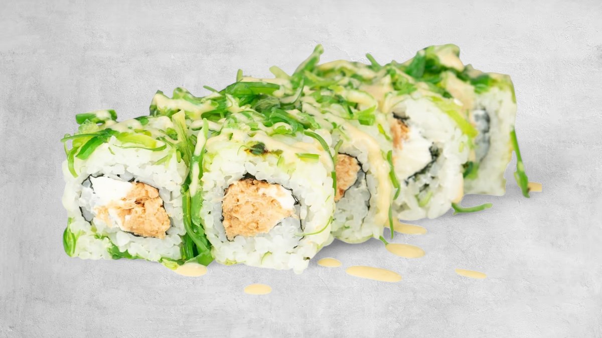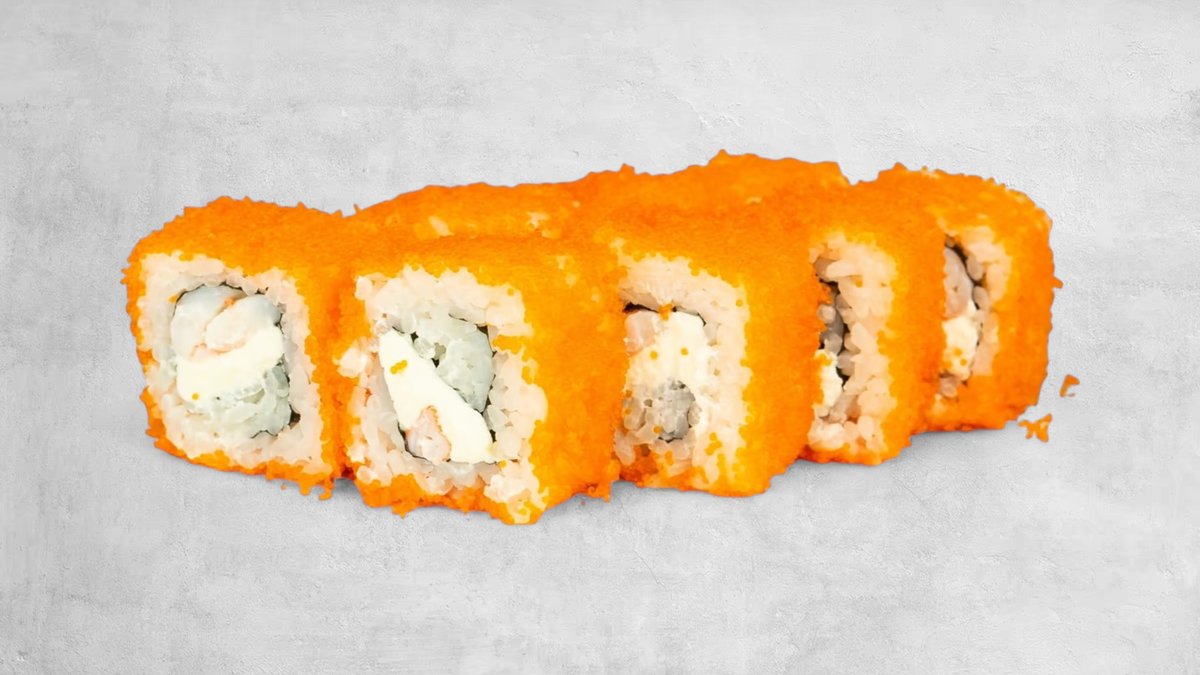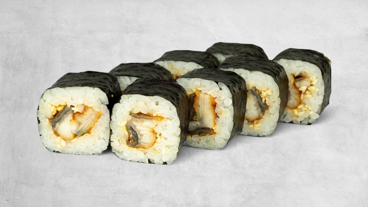 Lasis, gurķis, masago ikri, krēmsiers, unagi un speciālā mērce