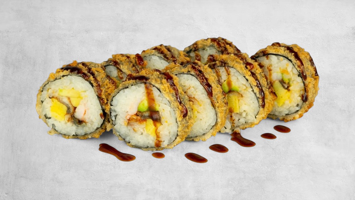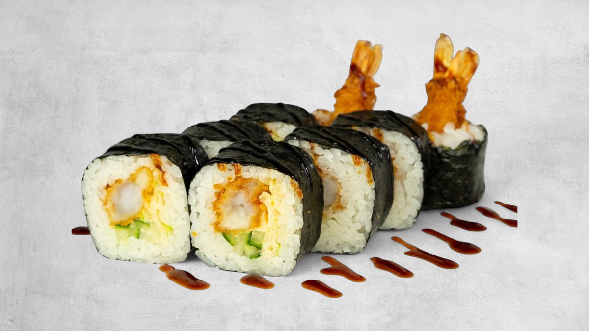 Garnele, krēmsiers, avokado, tamagojaki, unagi mērce. Alergēni - 1,2,5,10,12