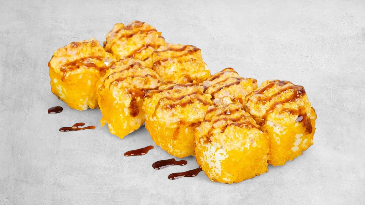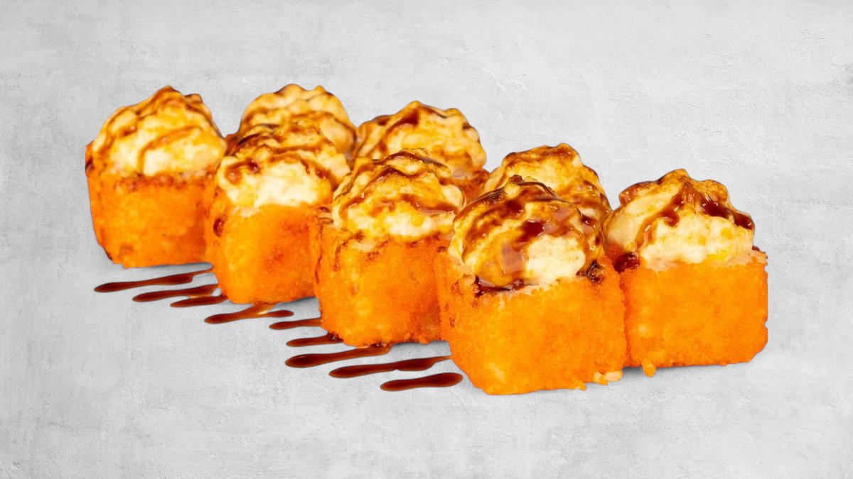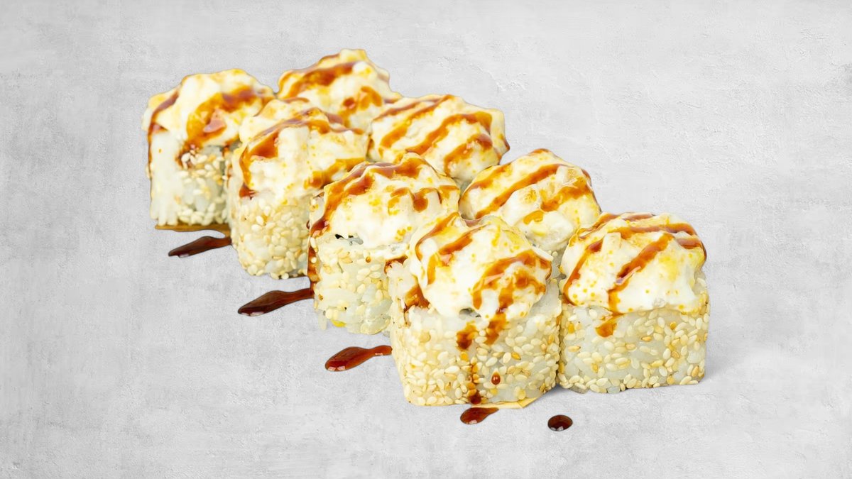 Tilapija, tīģergarneles, krēmsiers, tamagojaki, sezama sēklas, unagi mērce