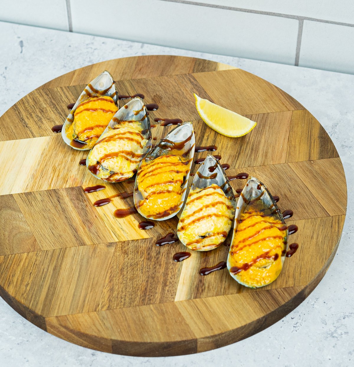 Garneles, mīdijas, masago ikri, sezama sēklas, unagi mērce (9 gab)