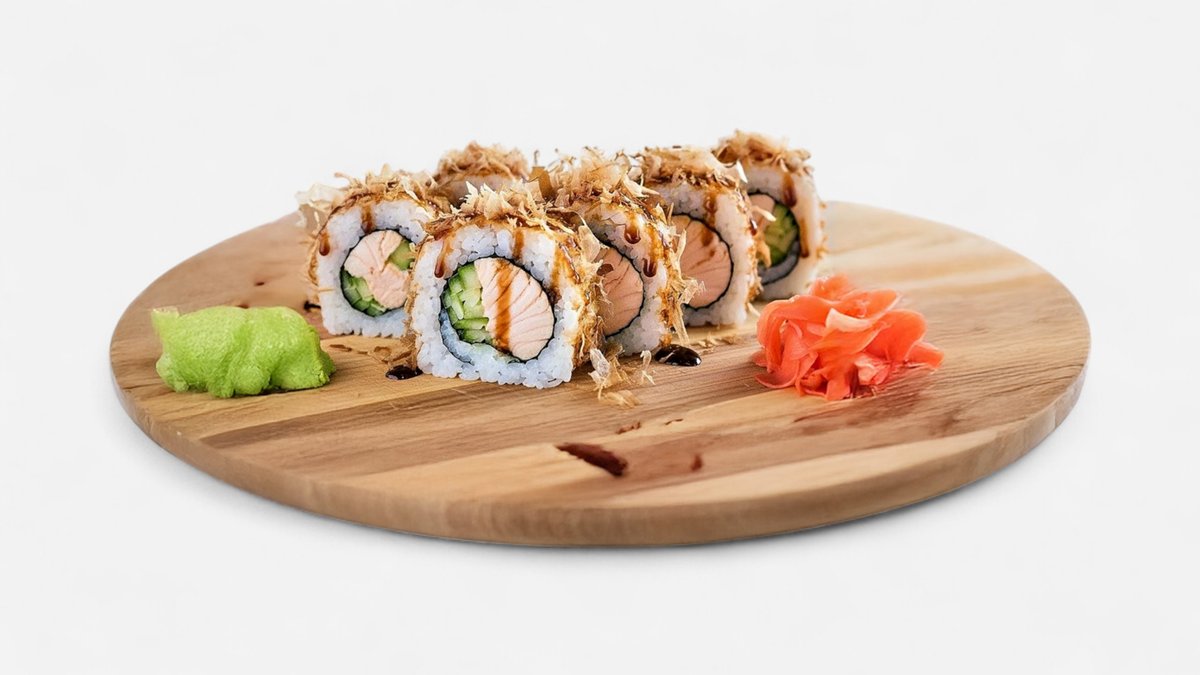 Bekons, gurķis, krēmsiers, masago ikri, unagi mērce