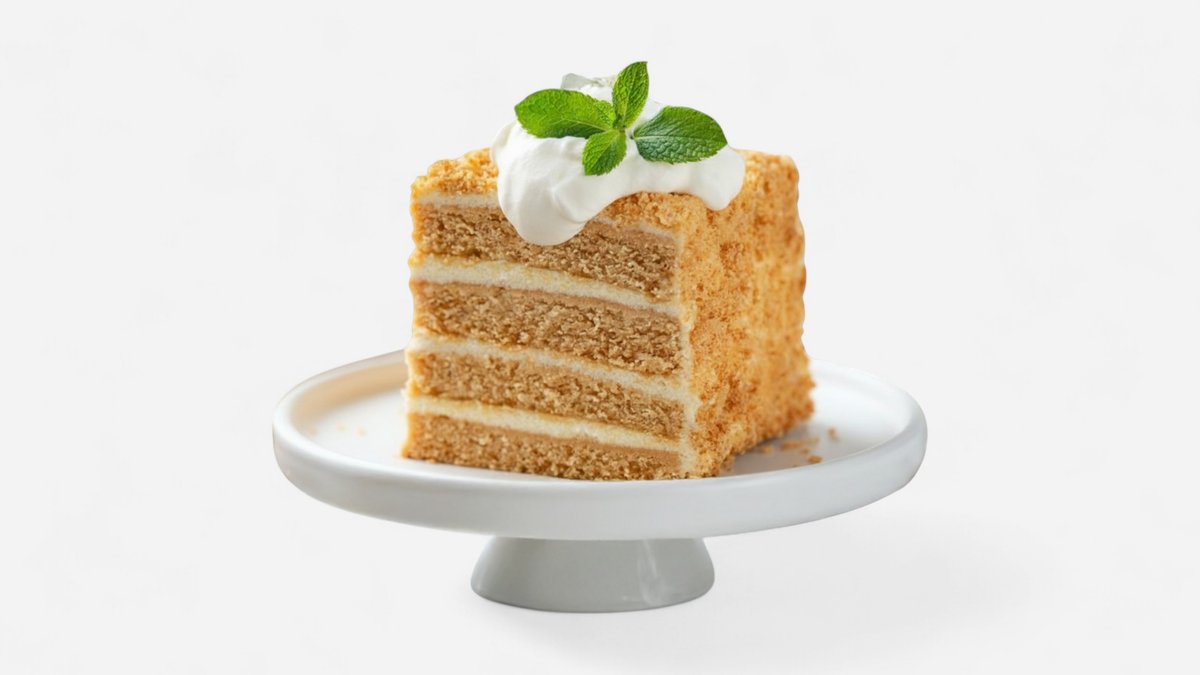 Biskvīts ar medus garšu un skābā krējuma krēms.