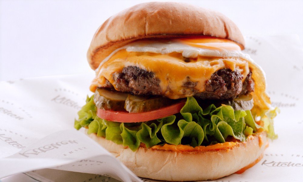 No Latvijas liellopu gaļas ar olu, Čedaras sieru, tomātiem, marinētiem gurķiem un salātu lapām