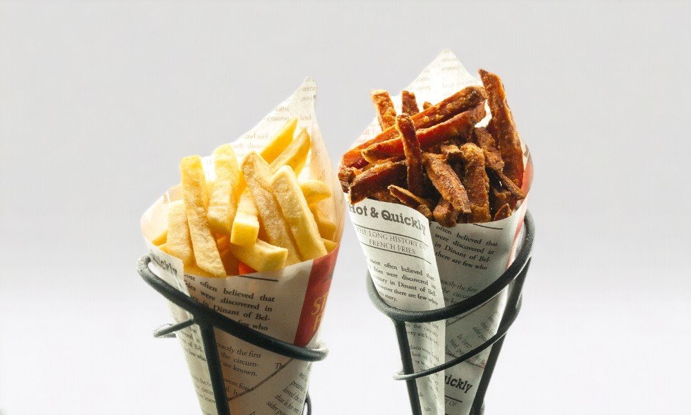 Liellopu maltā gaļa, pupiņas, frī kartupeļi, pašu gatavota asā mērce, siers un tomāti