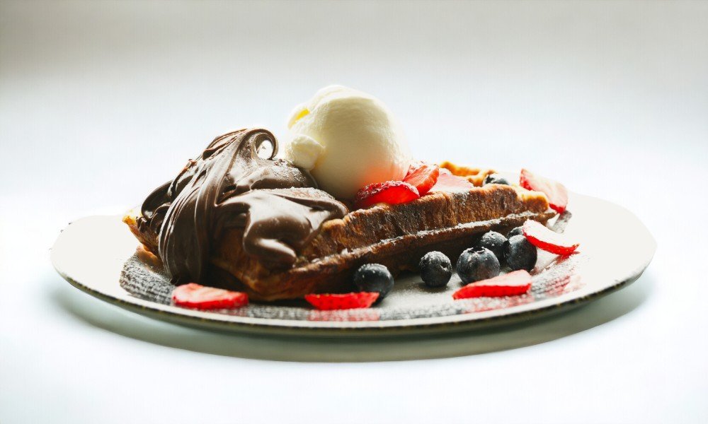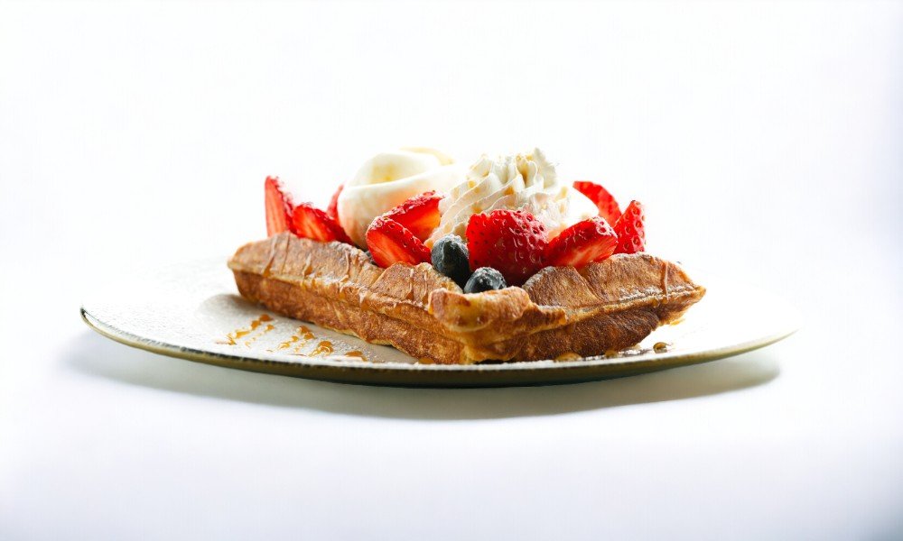 No Latvijas liellopu gaļas ar trifeļu pastu, Čedaras mērci, Beļģu kartupeļiem, Brī sieru un bekonu