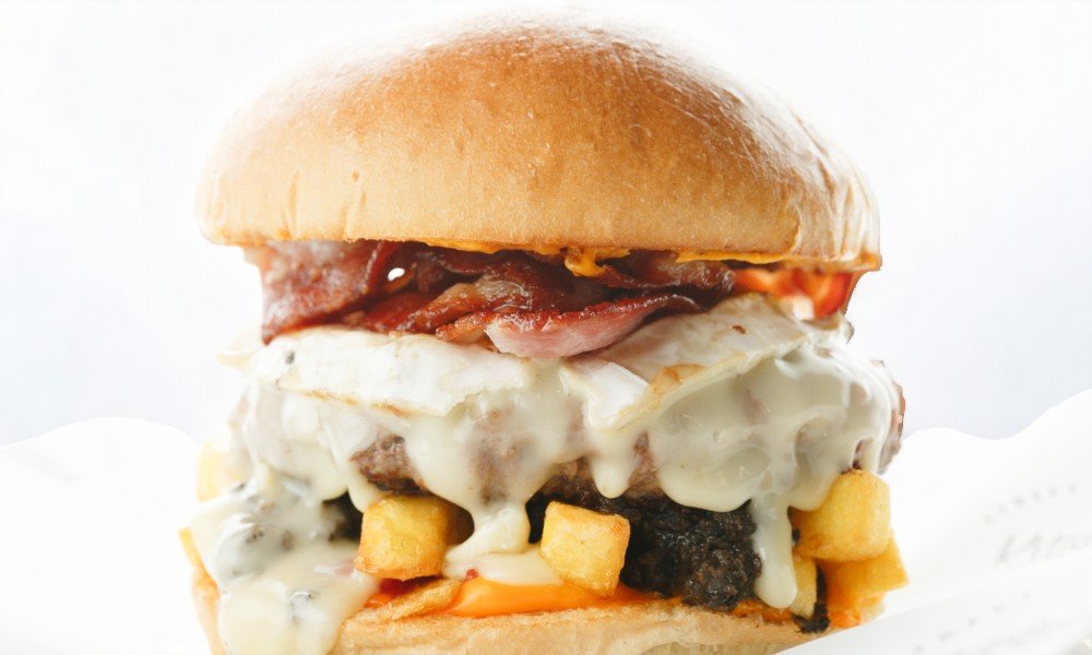 No Latvijas liellopu gaļas ar olu, Čedaras mērci un bekonu