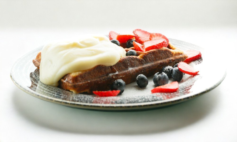 ar bekonu, kļavu sīrupu un Čedaras sieru