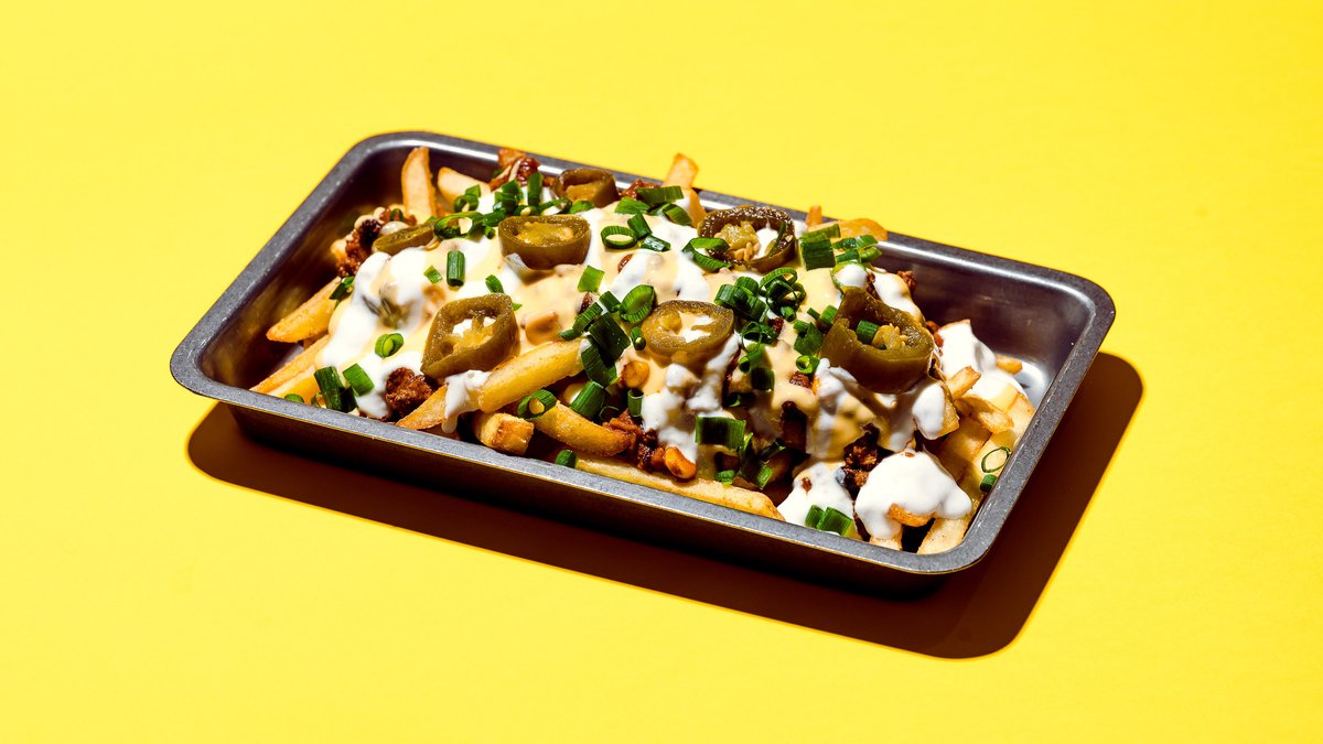 Frī, liellopa čilī con carne, siera mērce, krējuma - parmazāna mērce, halapeņjo pipari, lociņi.