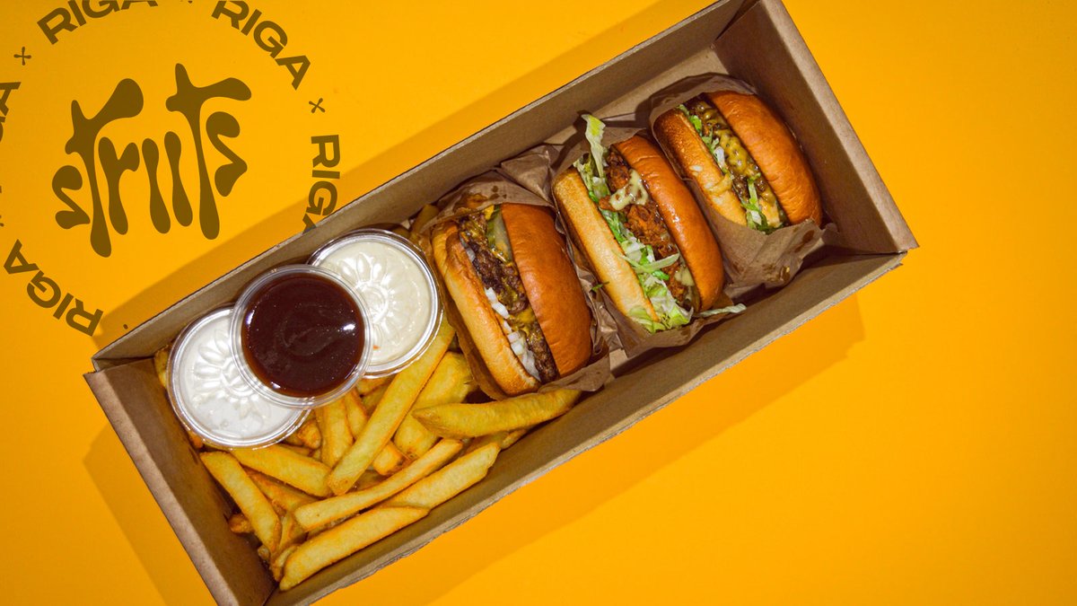 Izvēlies 3 burgerus. L izmēra frī un 3 mērces
