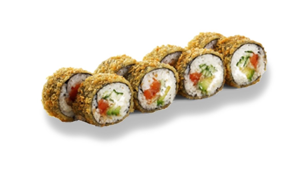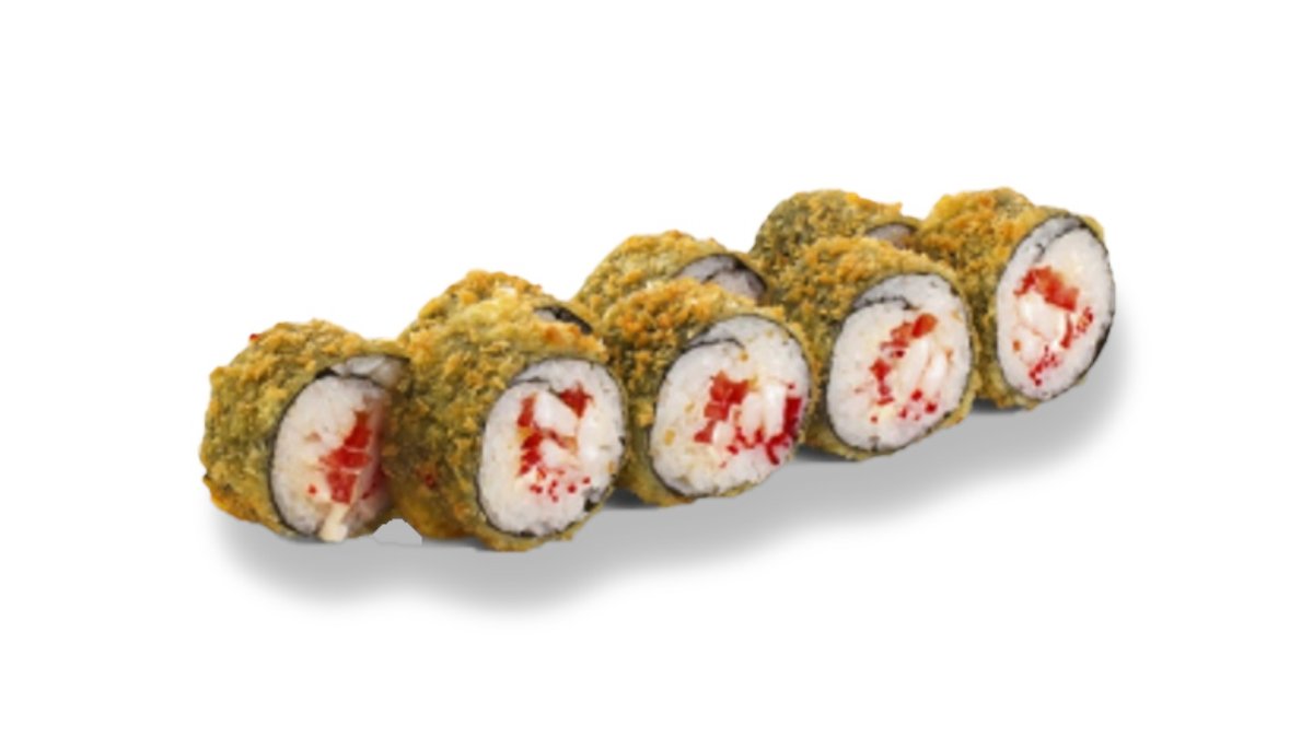 Fritēts rolls ar krabju nūjiņu, sarkaniem masago ikriem, krēmsieru