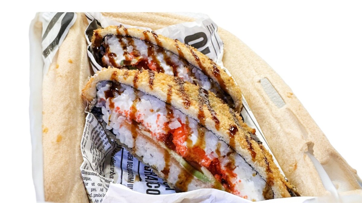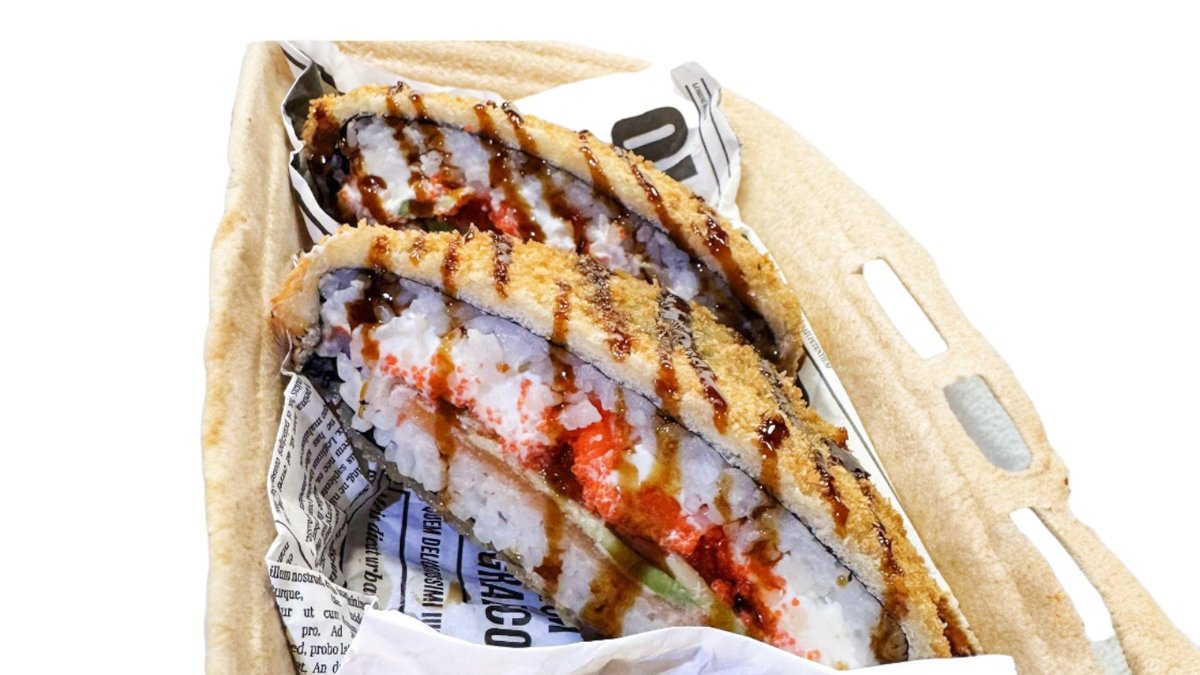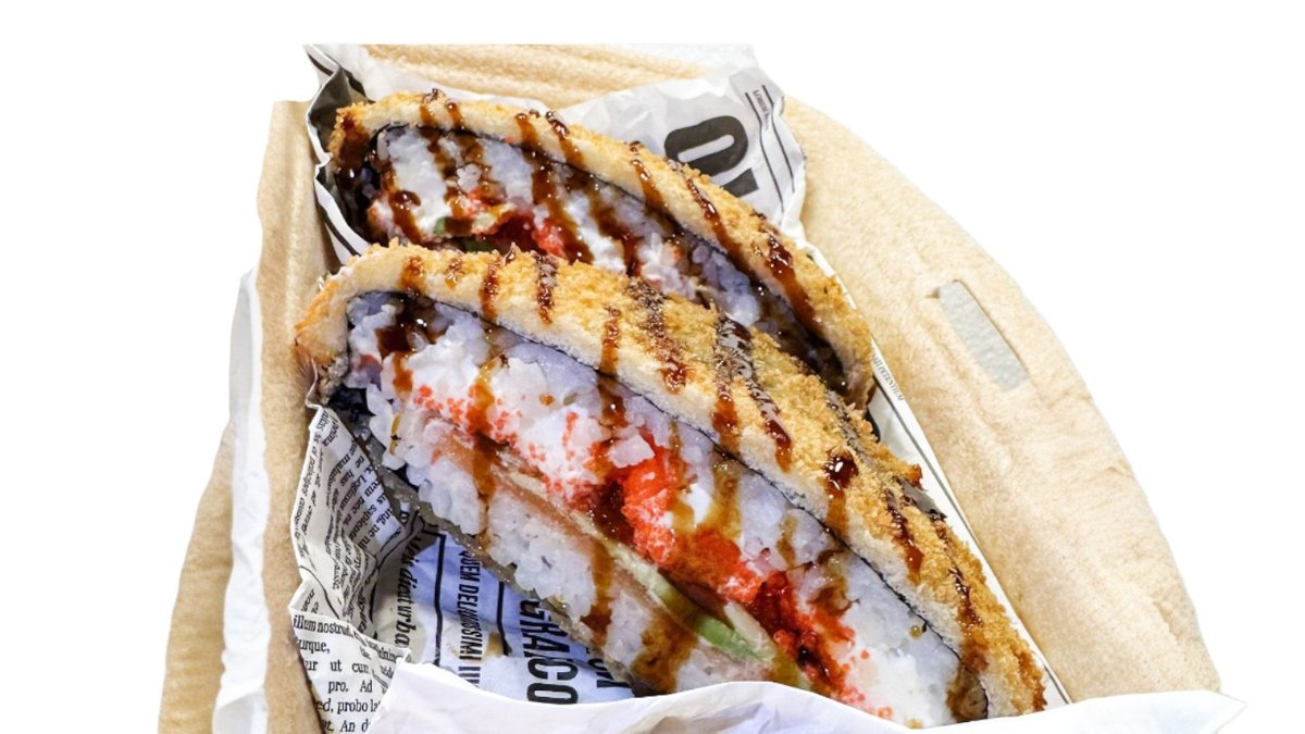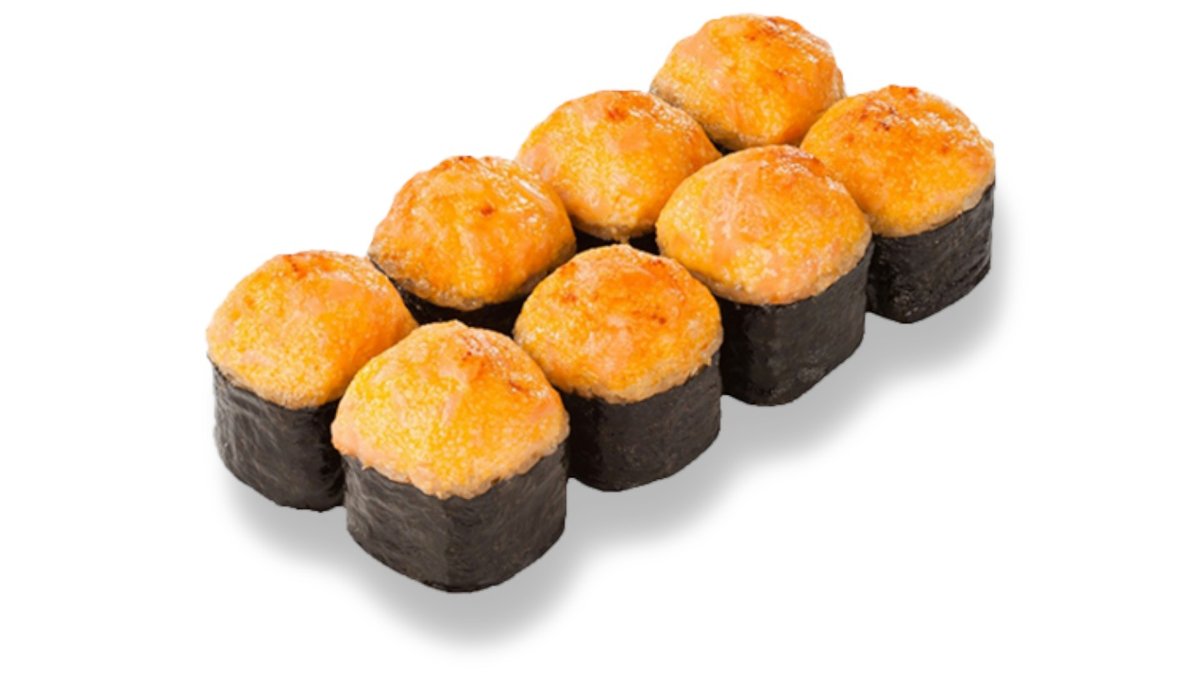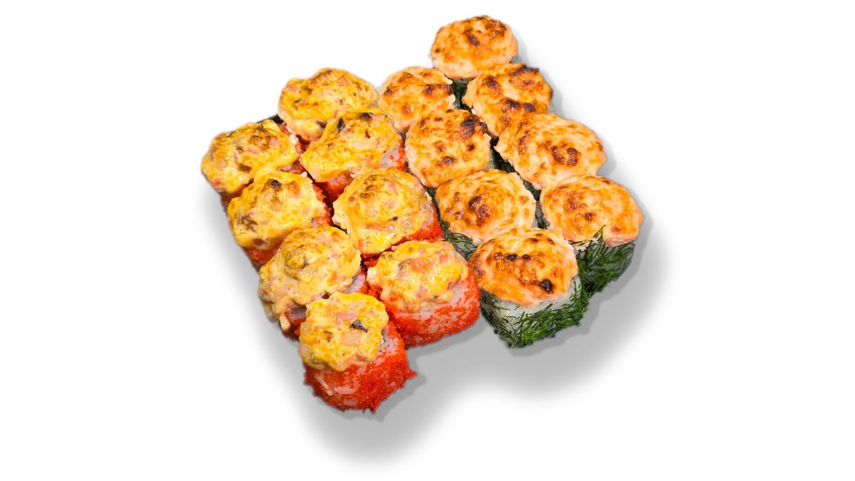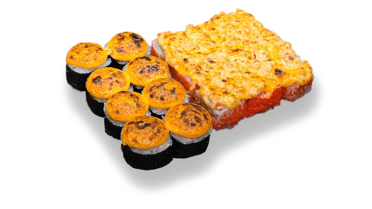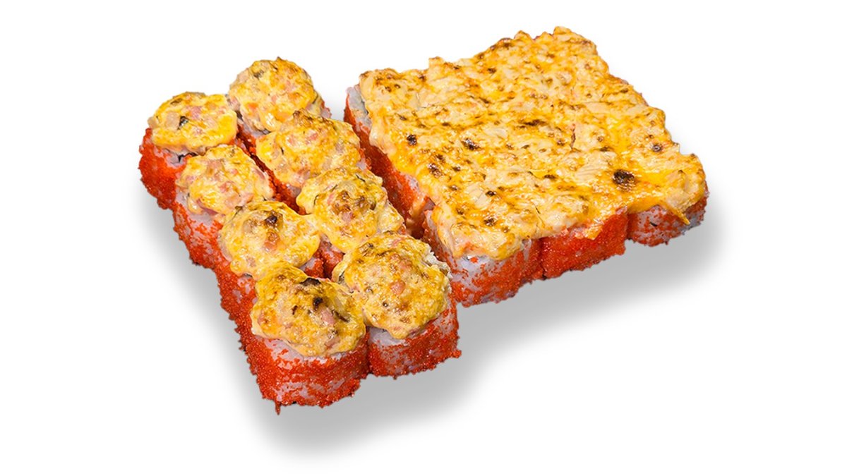 Siltais rolls ar krābju nūjiņu, krēmsieru un pikanto mērces cepurīti. Siltais rolls ar tomago (japāņu omleti), krēmsieru, tomātu, ar pikanto laša cepurīti.
