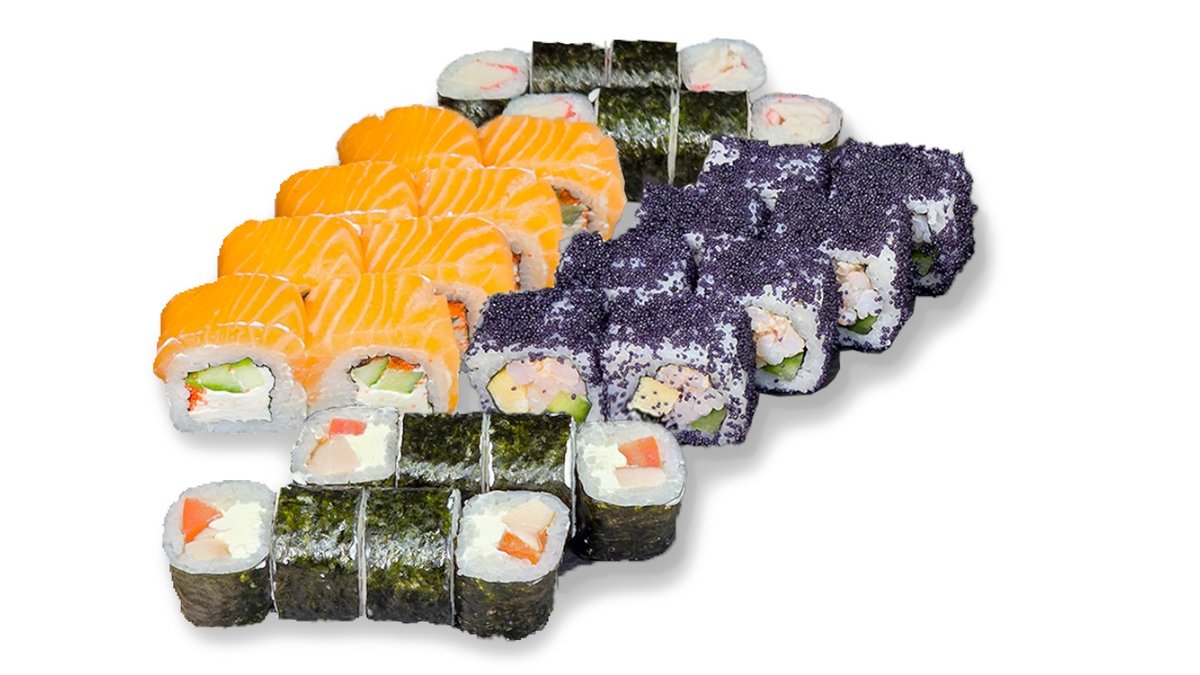 Rolls ar gurķi – gurķis, rīsi, sezams, Lion – tomāts, avokado, cepts lasis, rīsi, Sakura – cepts lasis, japāņu omlete, baltais sezams, rīsi, siera mērce, sarkanie masago ikri, Šoks – krēmsiers, tomāts, gurķis, sarkanie masago ikri, rīsi, cepurīte no pikantās mērces un rīvēta siera ar cepto lasi un papriku, Toka – krēmsiers, salāti Iceberg, japāņu omlete, avokado, baltais un melnais sezams, rīsi, cepurīte no japāņu majonēzes un rīvēta siera ar ceptu lasi, zaļajiem masago ikriem