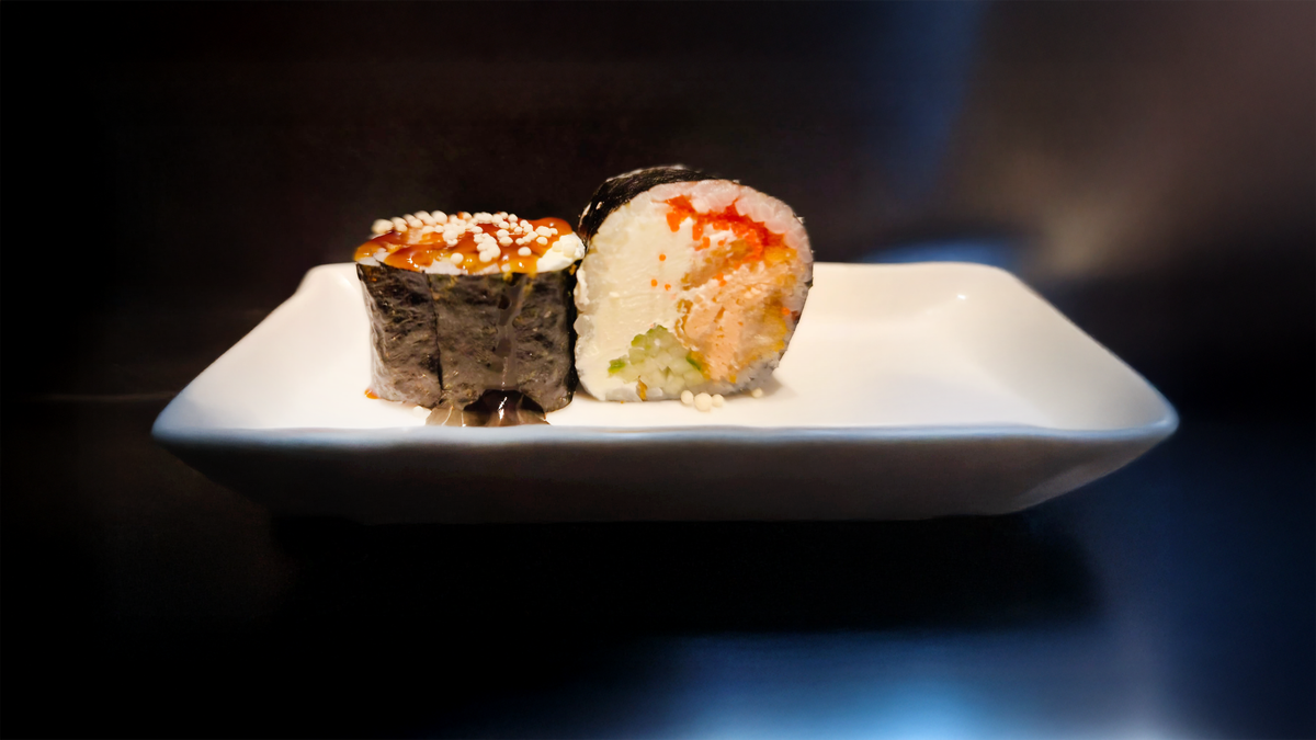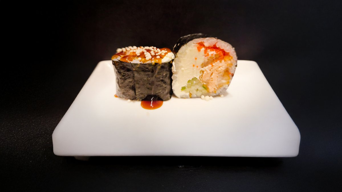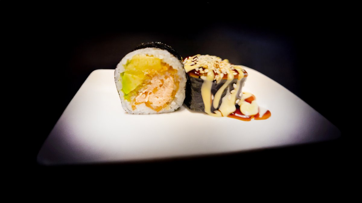 Zutis, krēmsiers, avokado, masago ikri, unagi mērce, majonēze (ar medu)