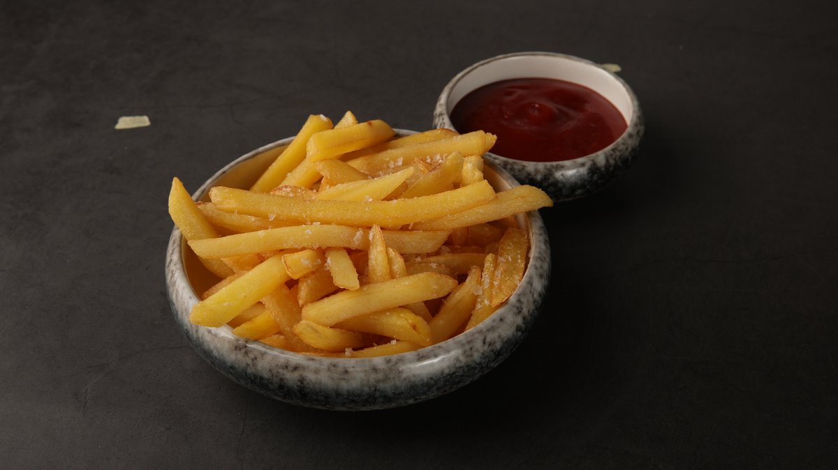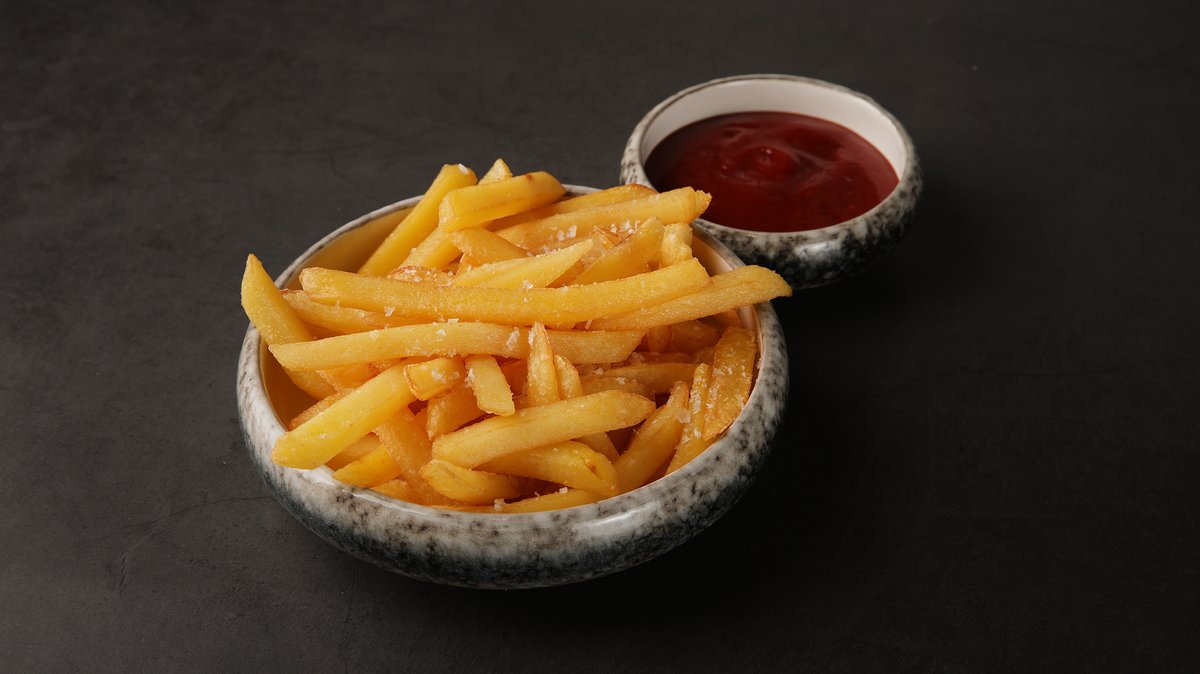 Garšīgi, zeltaini, svaigi vārīti kartupeļi, nedaudz apkaisīti ar sāli. Tiek pasniegti ar kečupu.