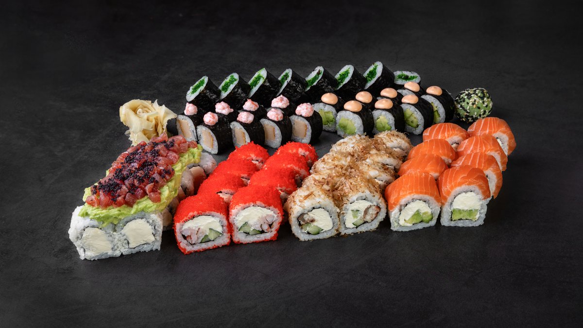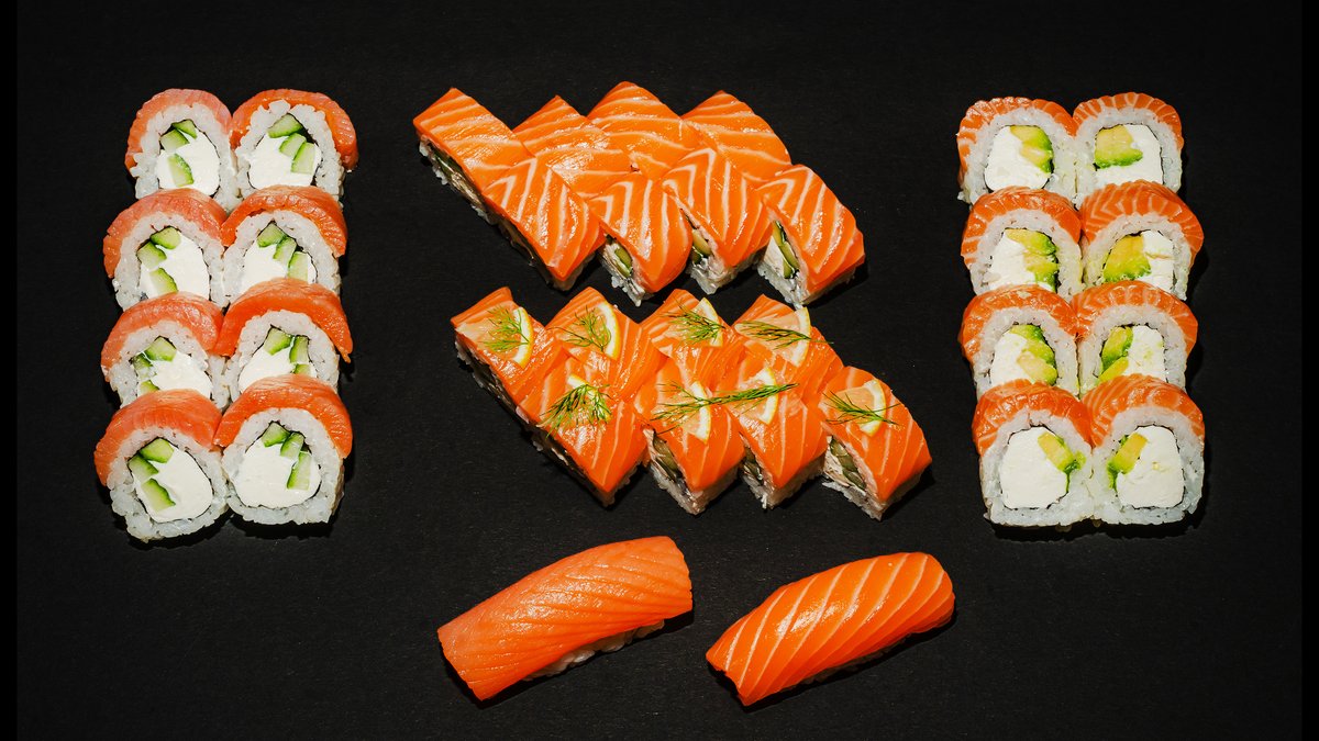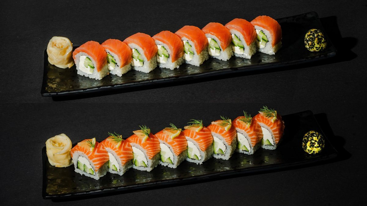Philadelphia Lux, Unagi Bonito, Salmon Tartar, Ebi Masago Maki, Wakkame Maki, Pikantā avokado Maki, Tomago siera Maki