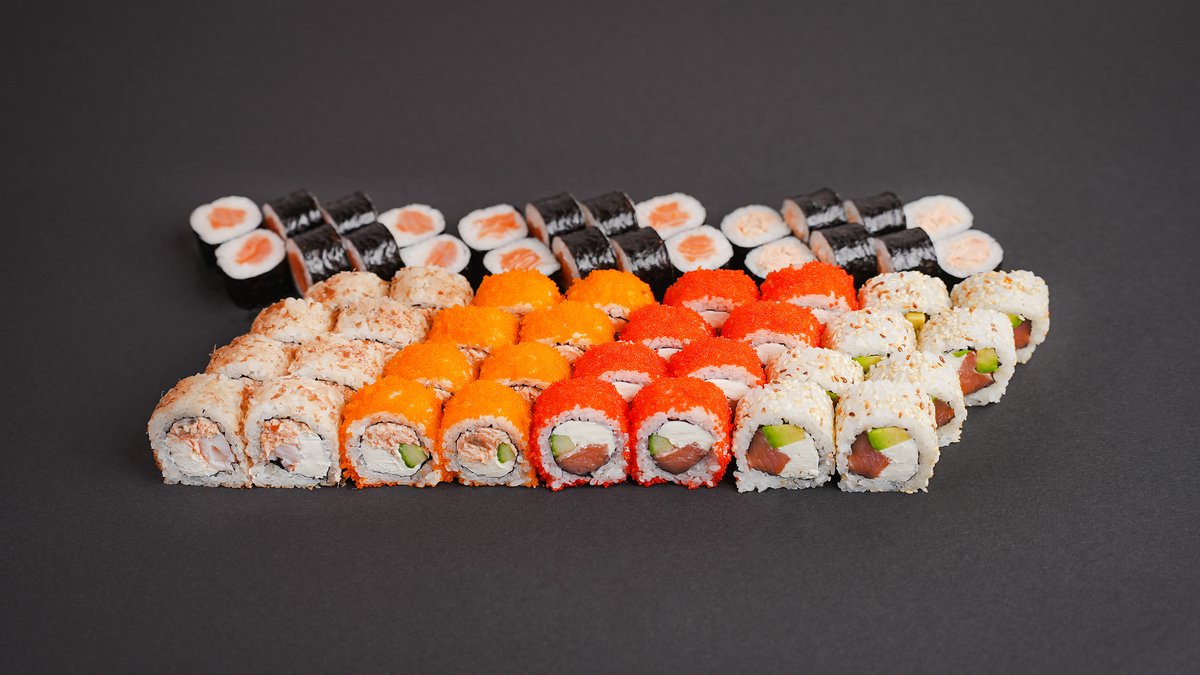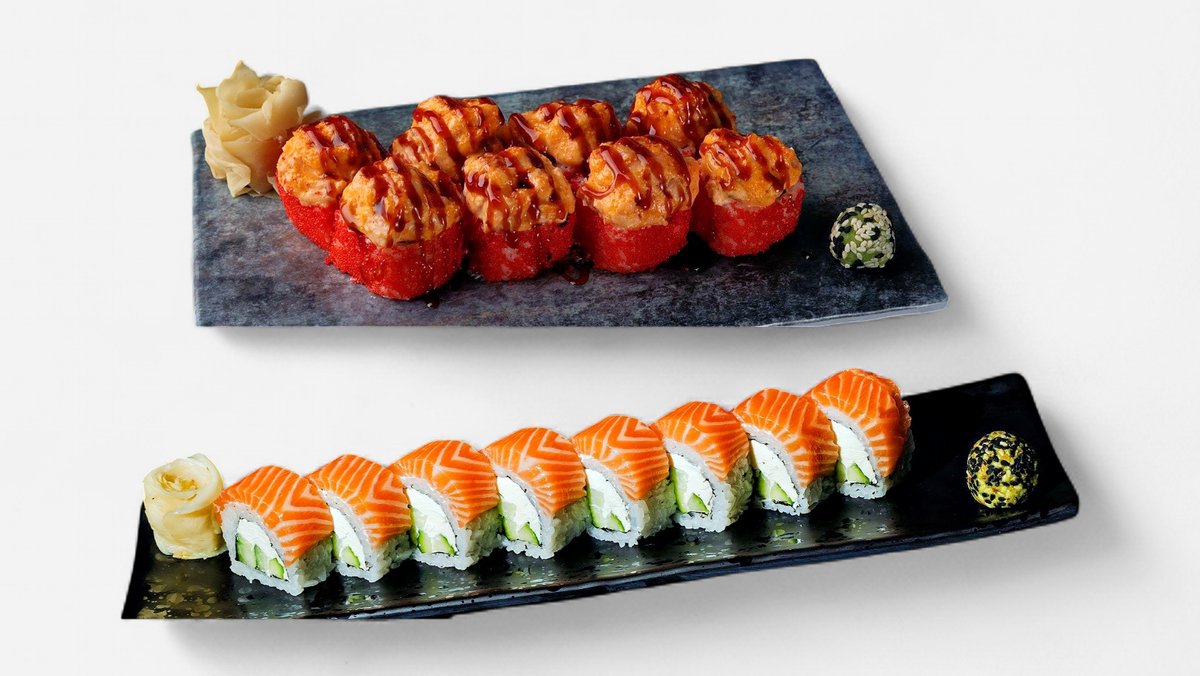 Spice Ebi 8 gab Salmon Spice 8 gab Kinoja 8 gab Nirogo Ebi 8 gab Philadelphia classic 8 gab Kanada Unagi 8 gab Surf Fish 8 gab Mango Kiri 8 gab