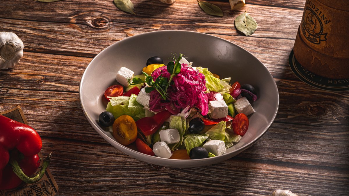 kartupeļi, liellopu gaļa, olas, zirnīši, majonēze, marinēti gurķi
