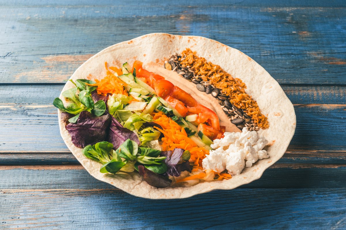 Vraps (lavašmaizē ietīti salāti) ar fetas sieru