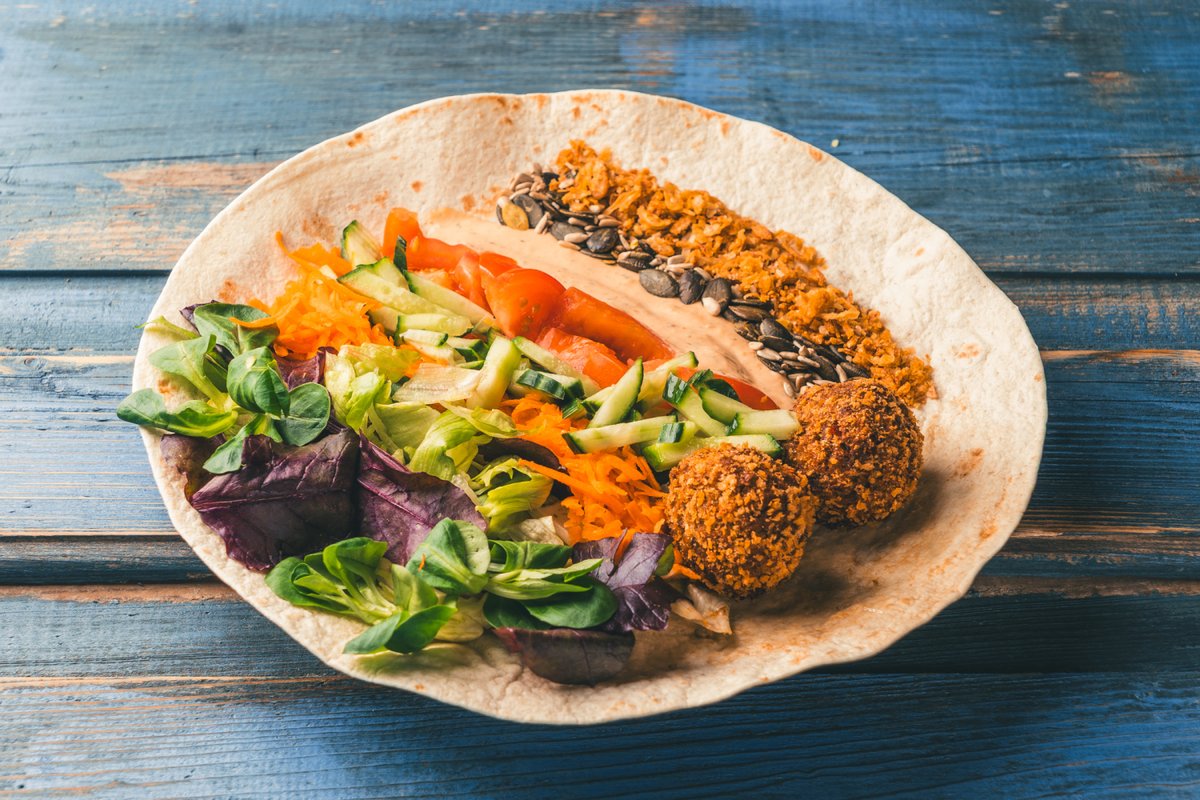 Vegānais vraps (lavašmaizē ietīti salāti) ar Falafeli