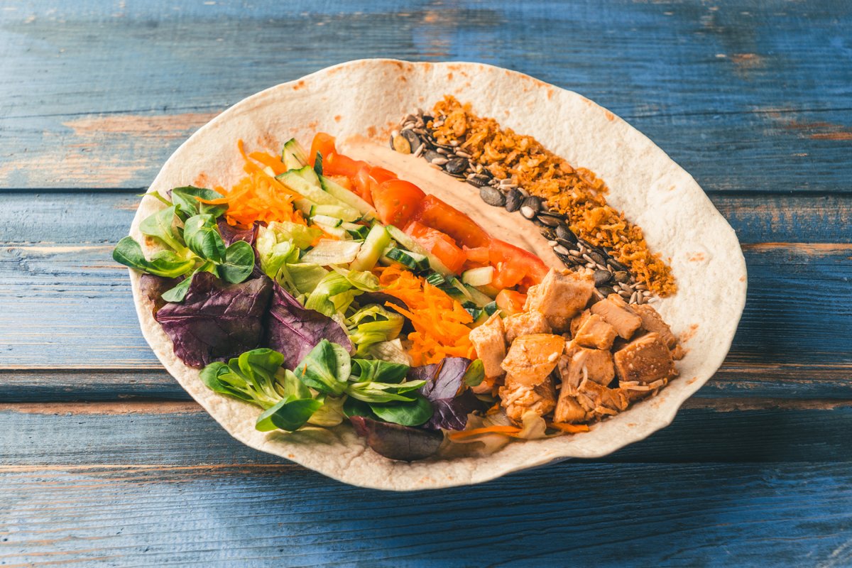 Vraps (lavašmaizē ietīti salāti) ar vistu