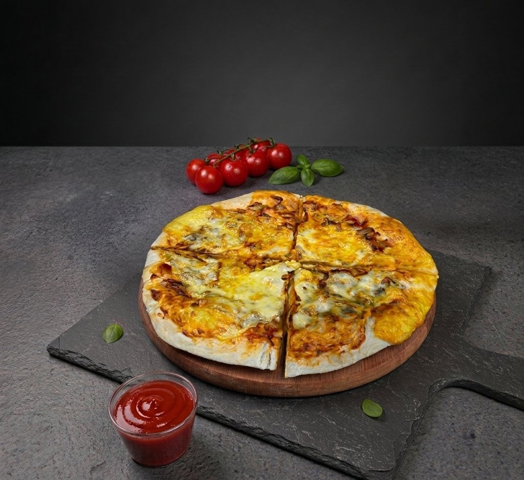 Veģetārs ēdiens ar mīklu un īpašo sieru, 25 cm