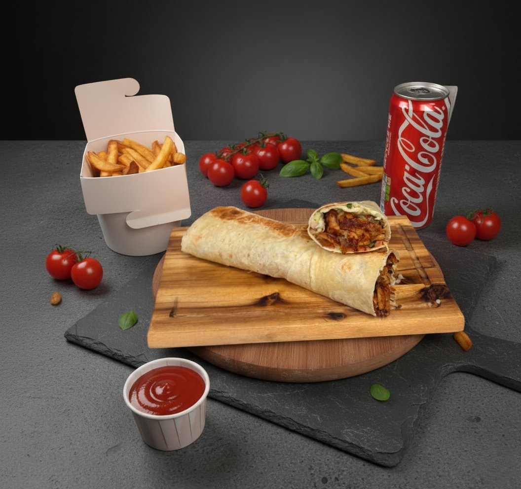 Šaurma + frī kartupeļi + dzēriens