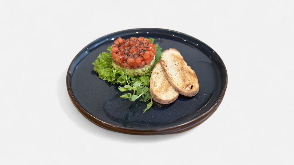 Avakado, sarkanais sīpols, citronu sula, olīveļļa, garšvielas, tomāti balzamiko mercē