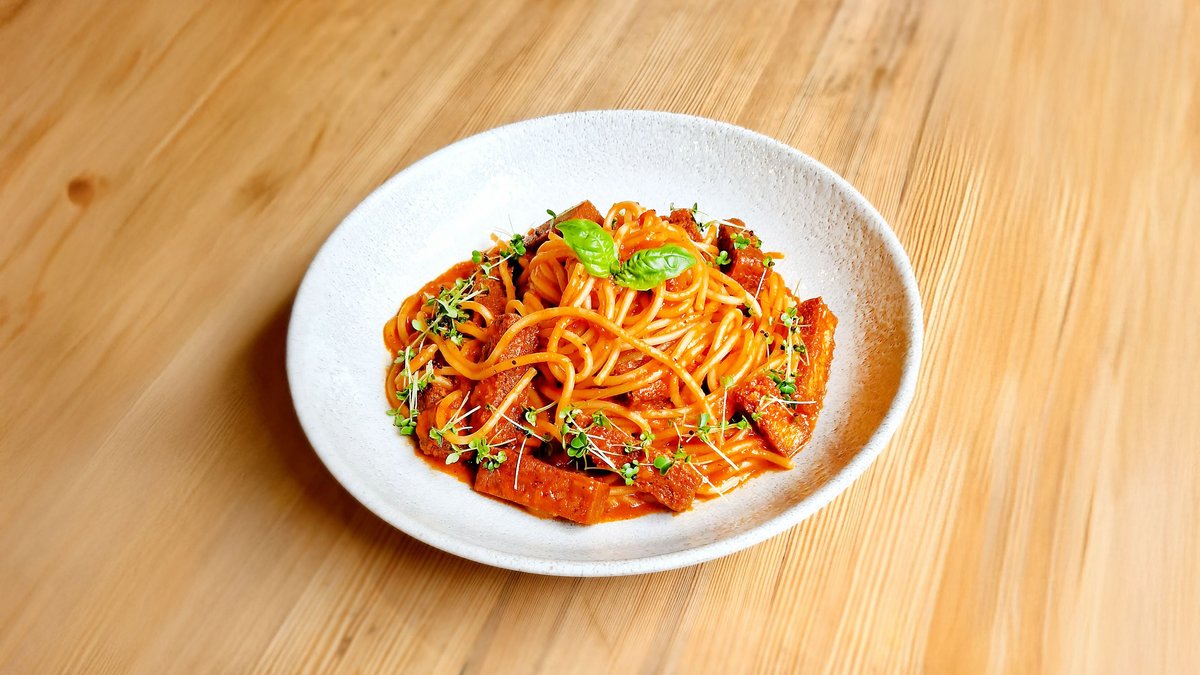 Tofu kroketi, zaļie salāti, tomāti, gurķi, burkāni korejas gaumē, mērces