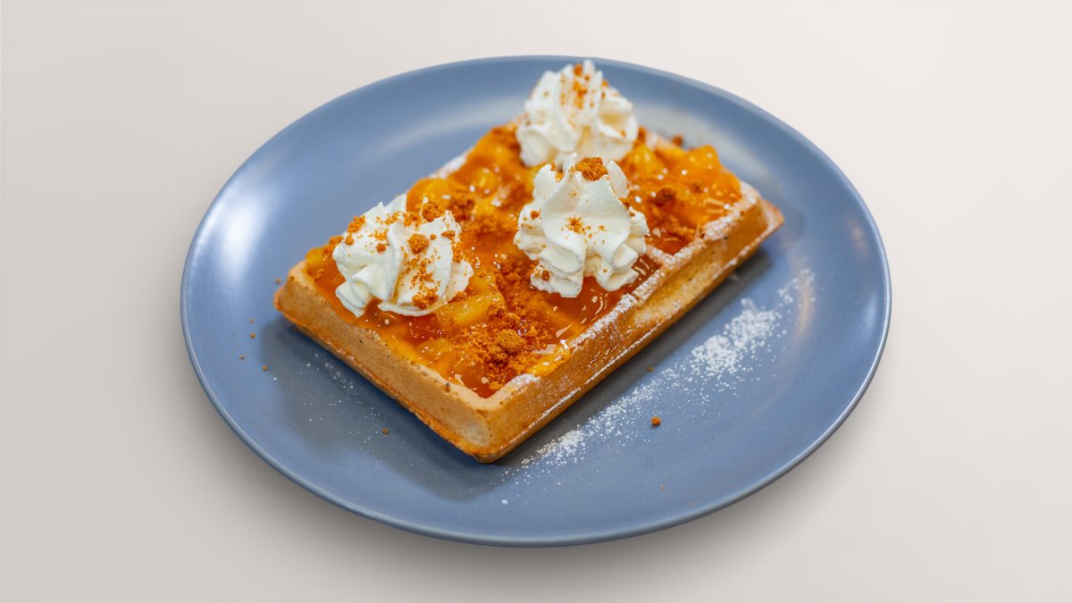 Burbuļu vafele ar tropu augļiem un putukrējumu