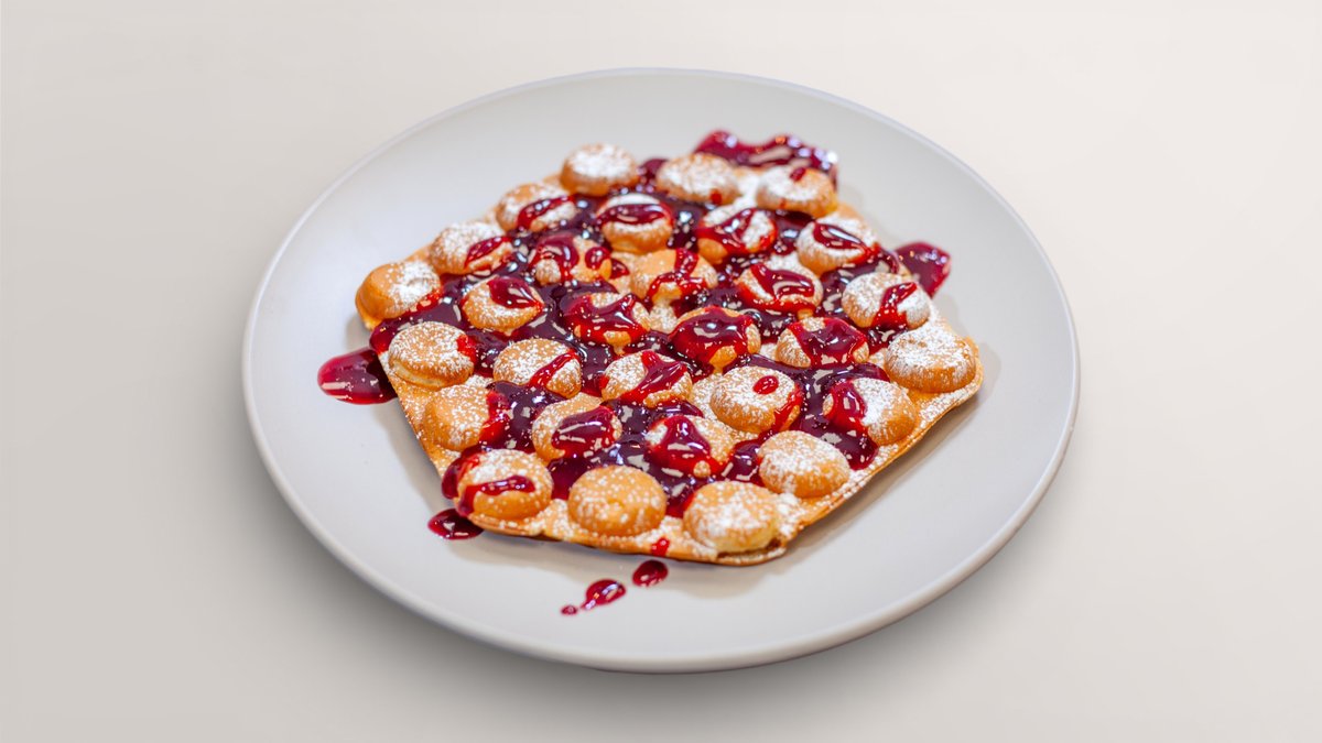 Burbuļu vafele ar ķiršu mērci