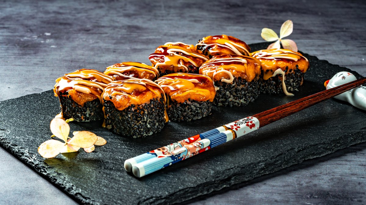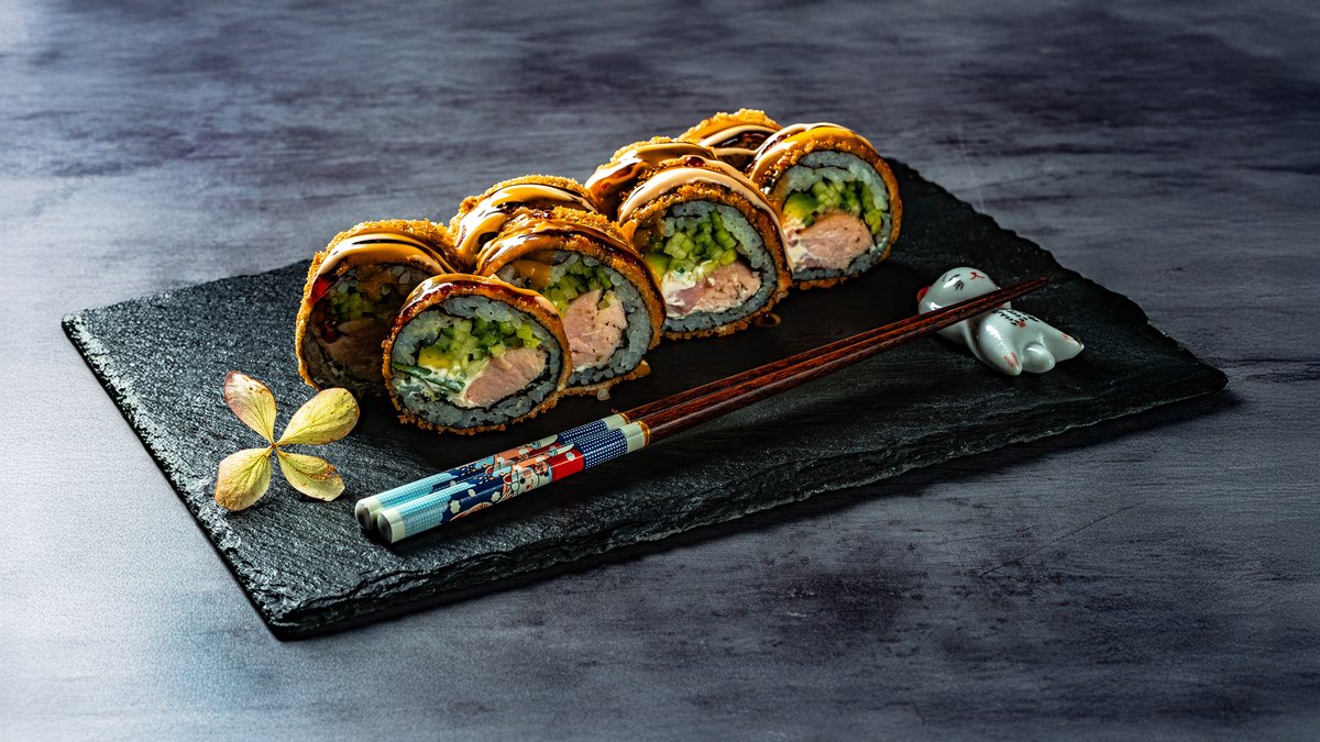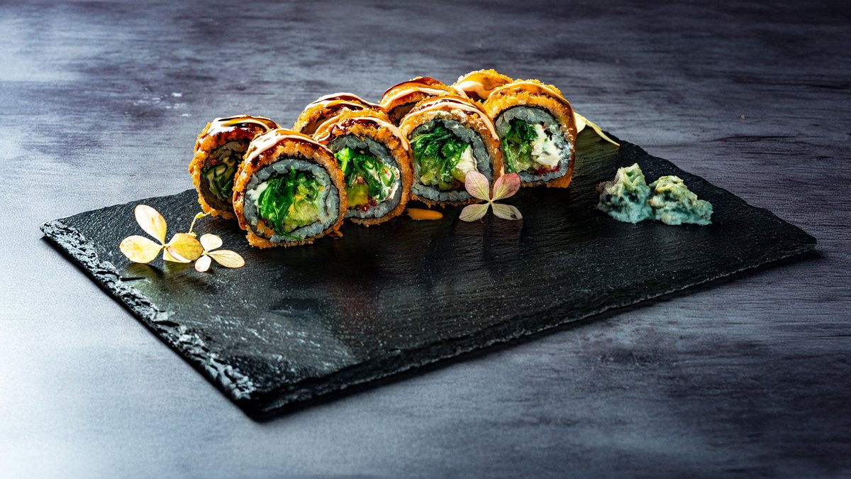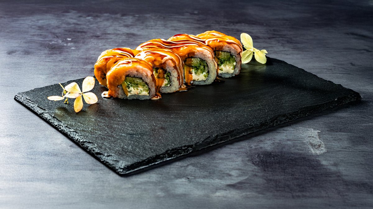 Avokado,gurķis,krēmsiers,sezams,unagi un mango mērce