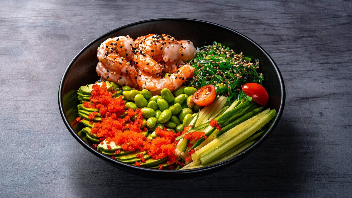 Tīģergarneles,avokado,gurķis,krēmsiers,unagi mērce