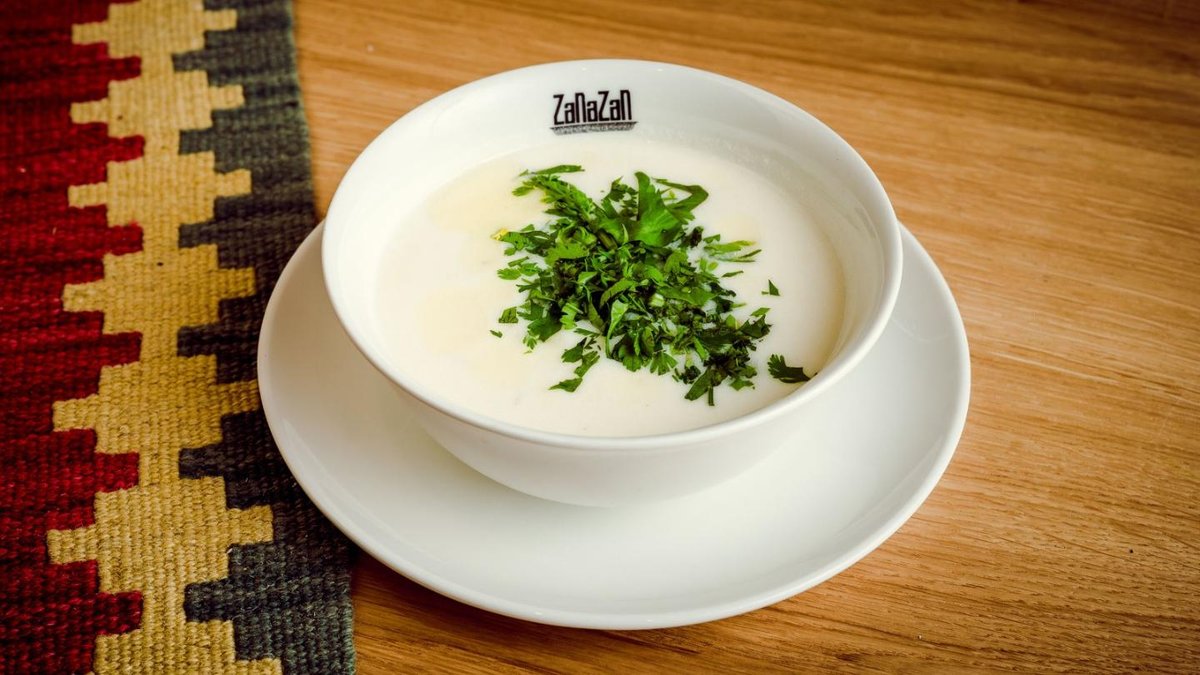 Jogurta zupa ar graudiem un svaigu koriandru