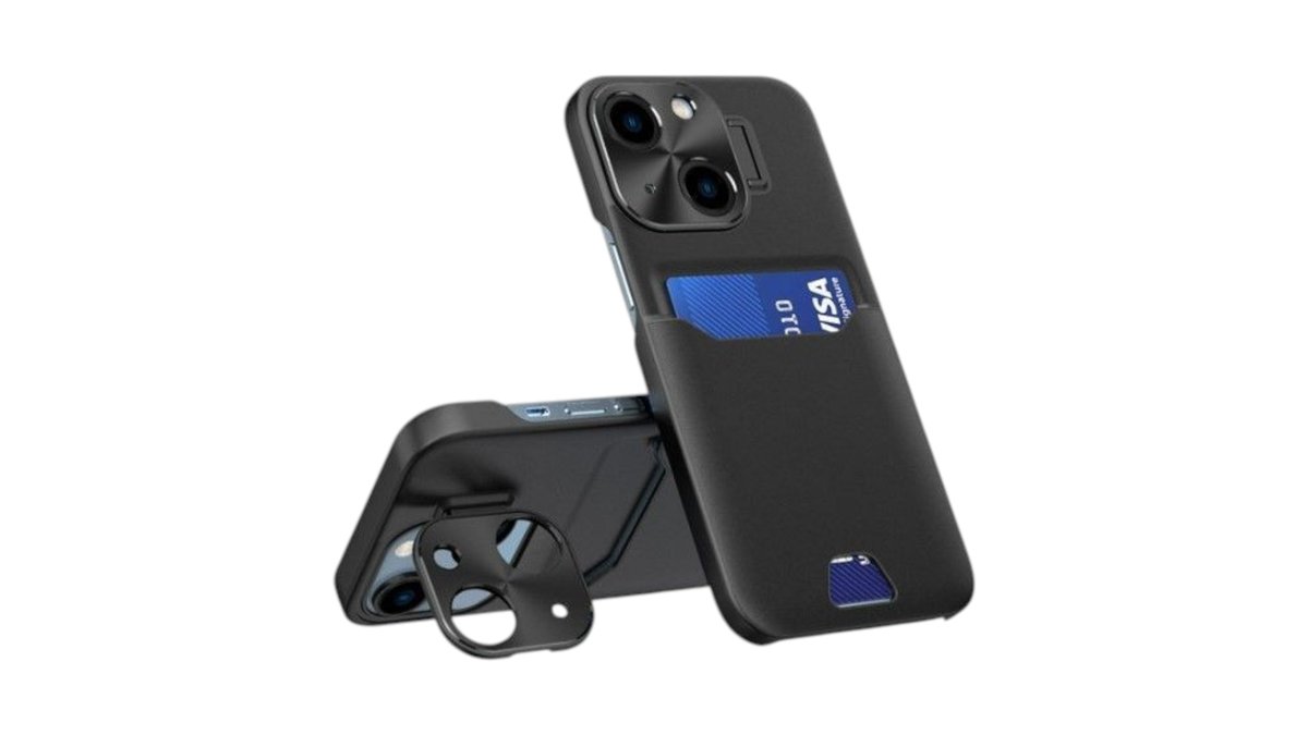 iLike - iPhone 14 Leather Stand Case cover card wallet with stand Black
